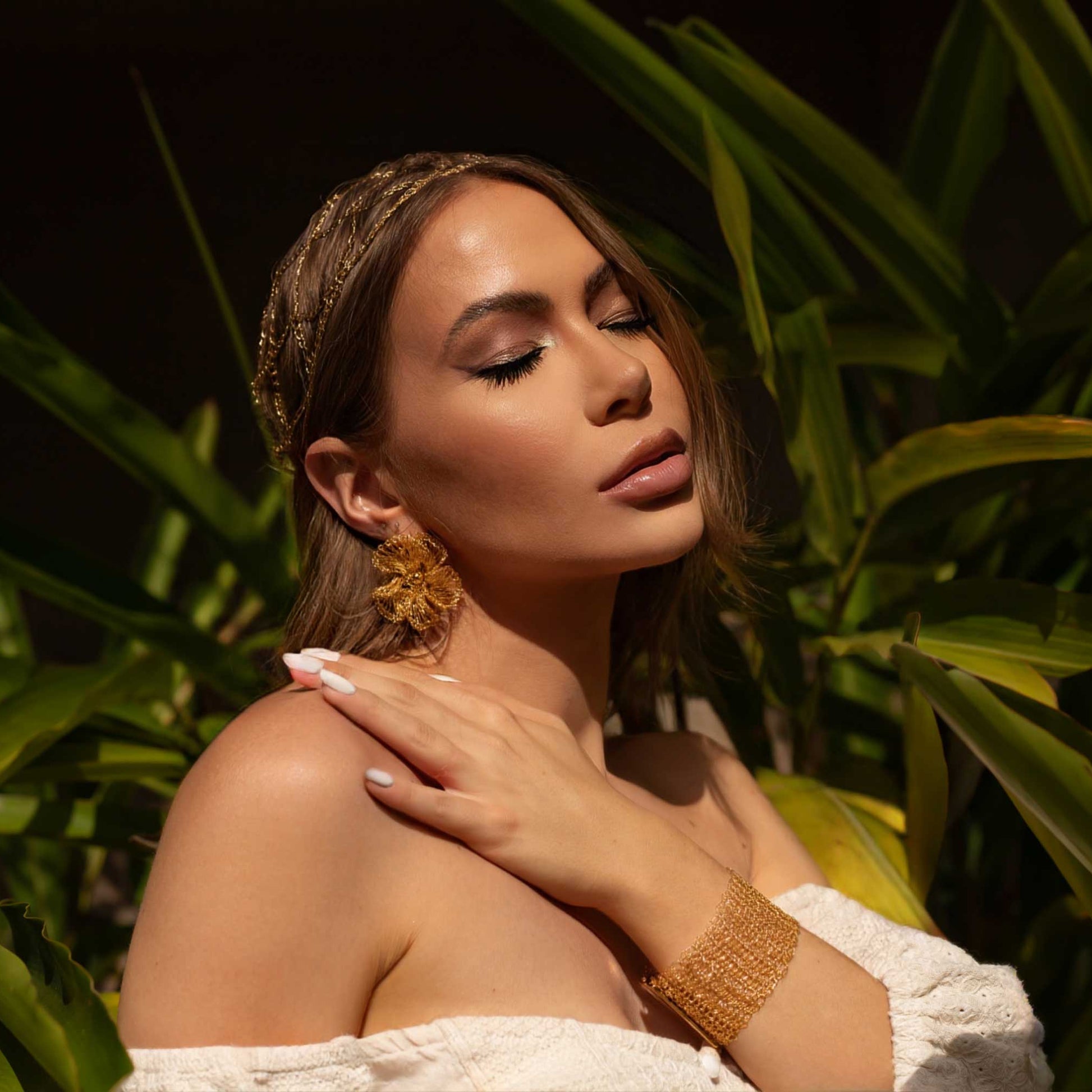 These floral, hand-crocheted post earrings were fabricated by skilled Brazilian artisans. The gold wire is supplemental to the fine craft artwork spent in every piece of our jewelry. They feature 18 karat gold filled copper wire. Made from non-allergenic (hypoallergenic) and nickel-free materials. Stunning jewelry that will last for a lifetime. Each pair of earrings takes hours to finish. The result is a remarkable piece of jewelry. This piece is entirely handmade in Brazil.