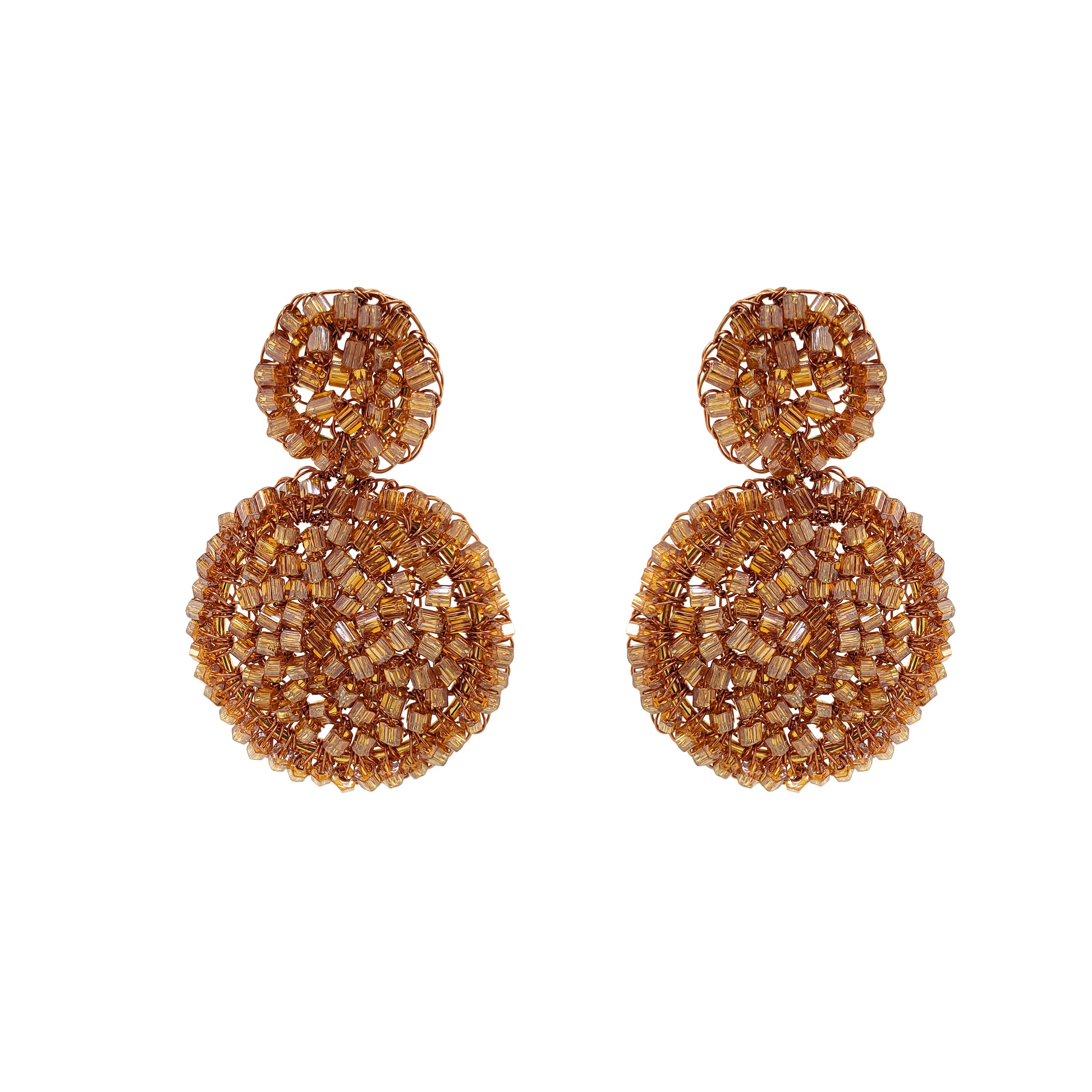 Bronze Amber Mix Dahlia Mini Handmade Crochet Earrings