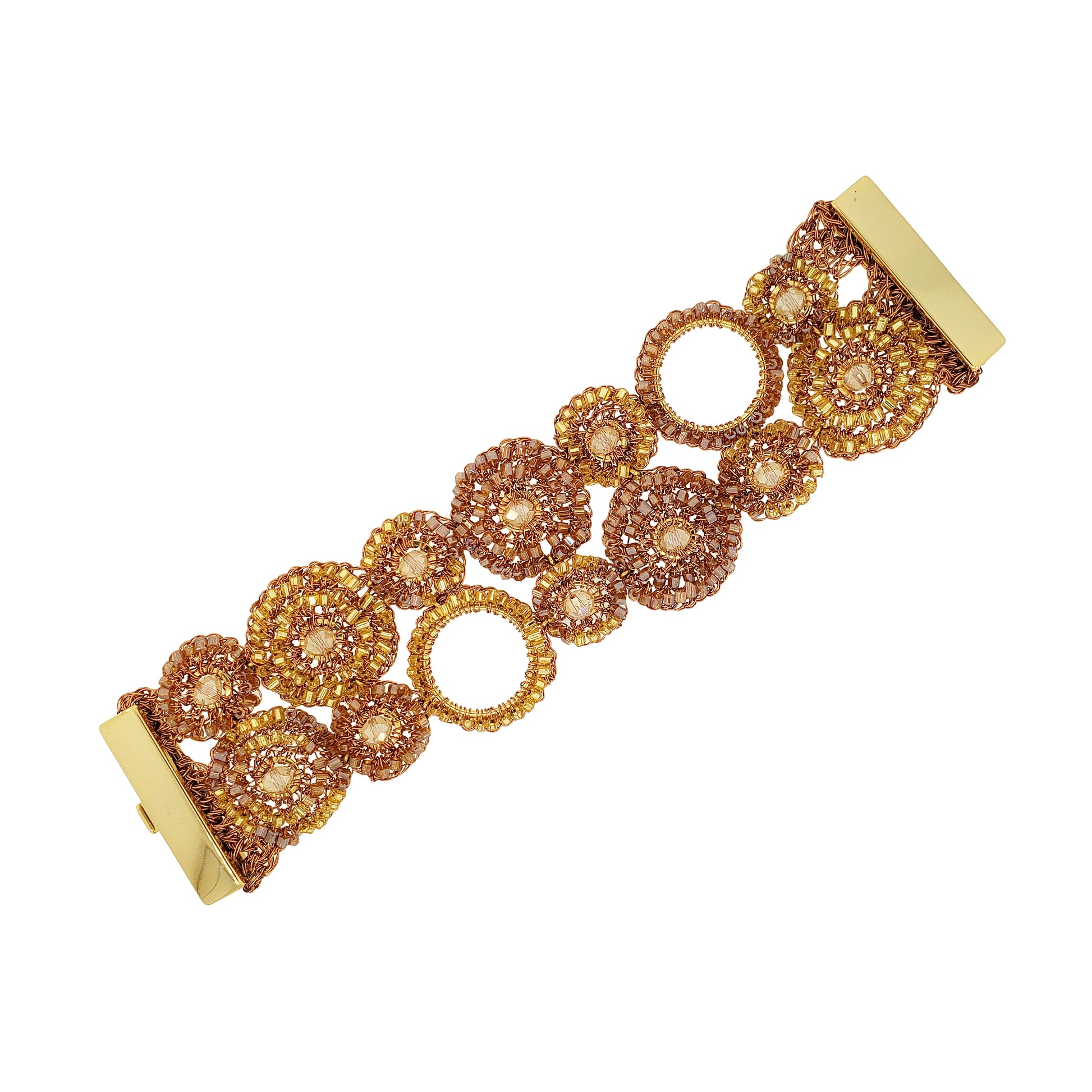 This mandala patchwork, hand-crocheted cuff was fabricated by skilled Brazilian artisans. The shiny enameled copper wire creates a statement look without weight or bulk! They are very comfortable to wear, light and can be worn in every occasion: day-to-night and casual-to-special. The sparkling crystals and glass beads are supplemental to the fine craft artwork spent in every piece of my jewelry. Made from non-allergenic (hypoallergenic) and nickel-free material. Stunning jewelry that will last for a lifetime. The magnetic clap makes this bracelet easier to get on and off. The result is a remarkable piece of jewelry.