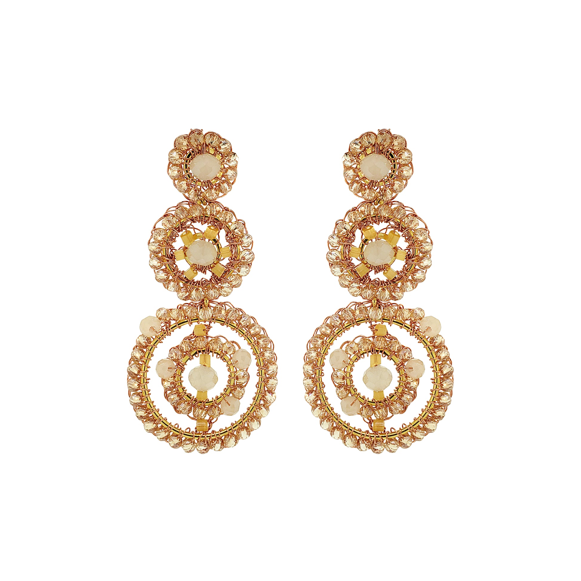 These striking handmade cascade trio earrings are crafted by skilled Brazilian artisans using enameled wire and dazzling amber and yellow crystals. The intricate crochet design blends circular and geometric shapes, creating a modern and elegant statement piece. Lightweight, hypoallergenic, and nickel-free — these earrings combine craftsmanship, comfort, and timeless beauty. Stunning jewelry that will last for a lifetime.