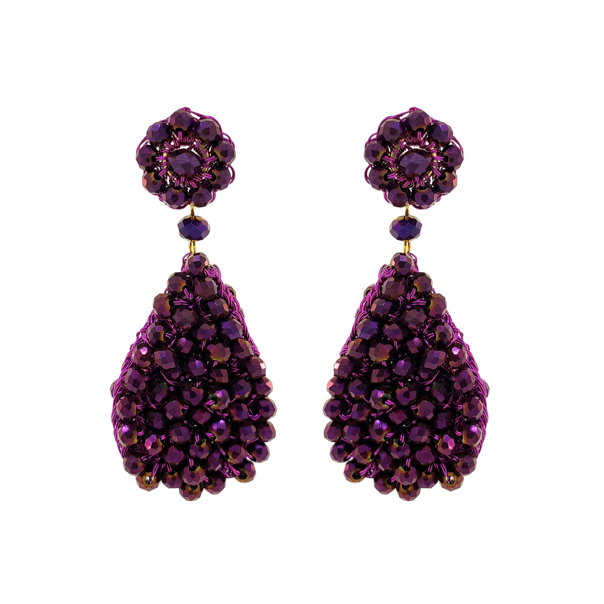 Metallic Purple Zoelle Drop Handmade Crochet Earrings