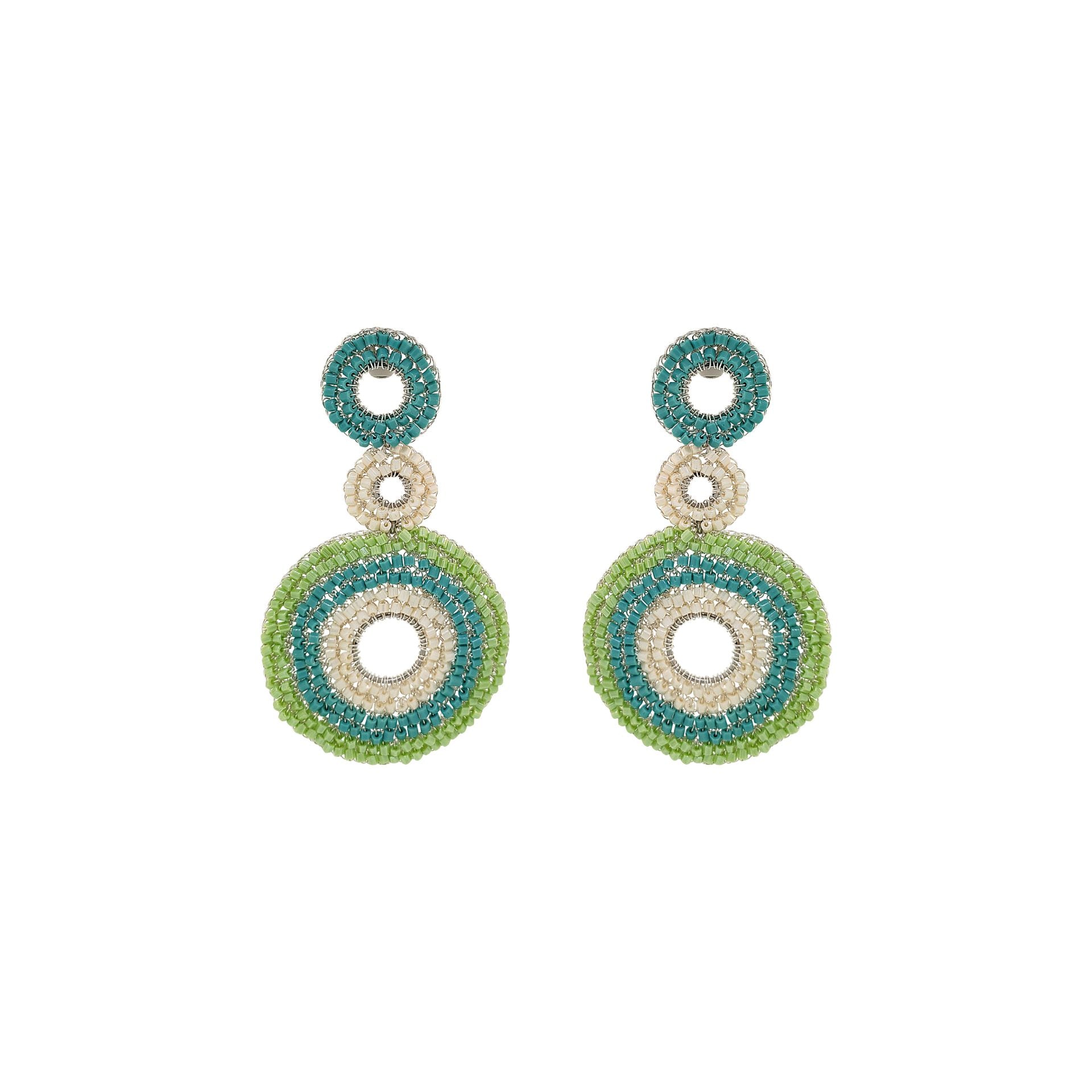 These triple mandala, hand-crocheted cascade earrings were created by skilled Brazilian artisans. They are made with palladium filled copper wire and they make a statement without the weight or bulk! Made with hypoallergenic materials and nickel-free. Stunning jewelry that will last for a lifetime.