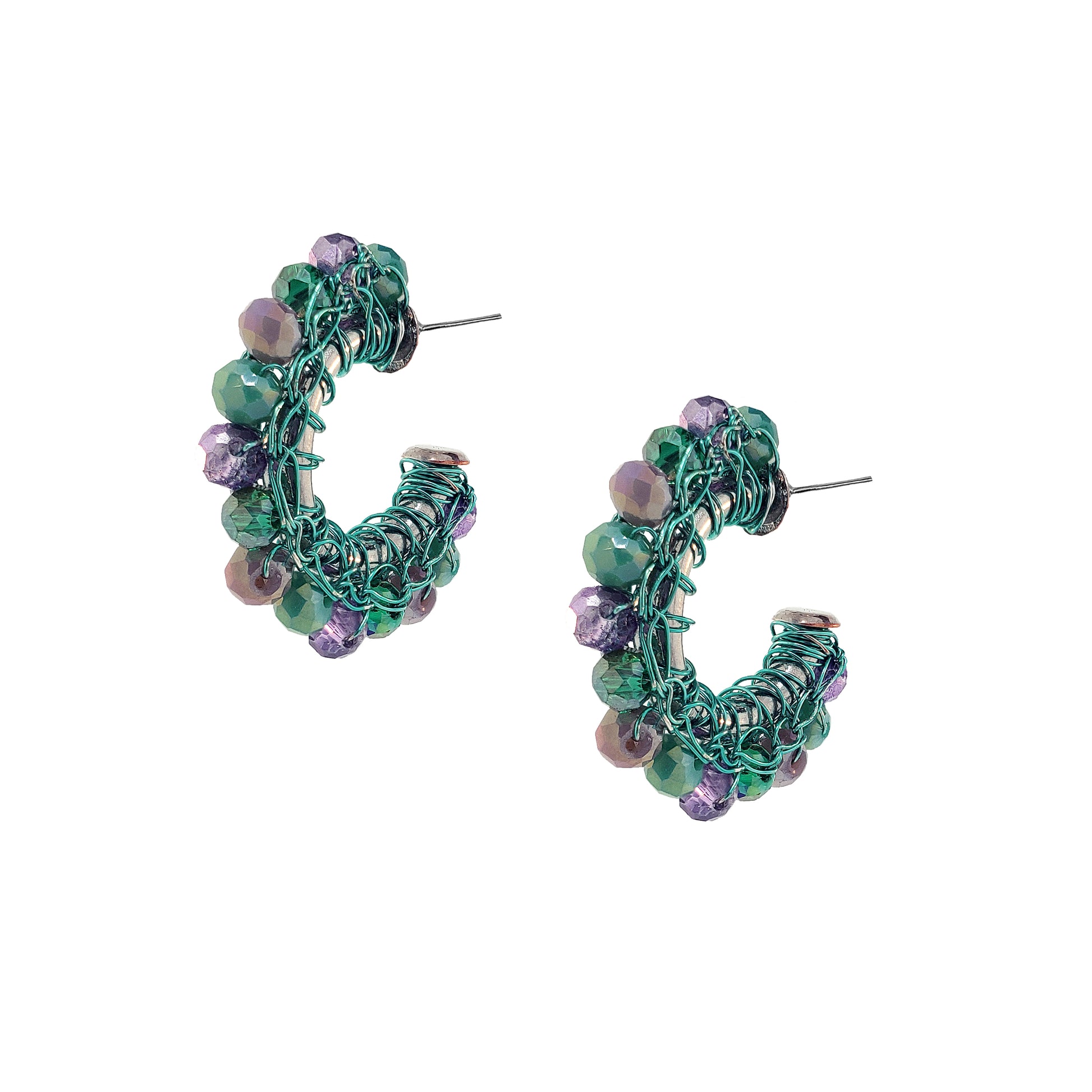 These hand-crocheted hoops earrings were created by highly skilled Brazilian artisans. They feature shiny enameled wire and are detailed with shiny glass beads. Made with hypoallergenic and nickel-free materials. Stunning jewelry that will last for a lifetime. This piece is 100% Hand Crocheted made with enameled wire in Brazil.