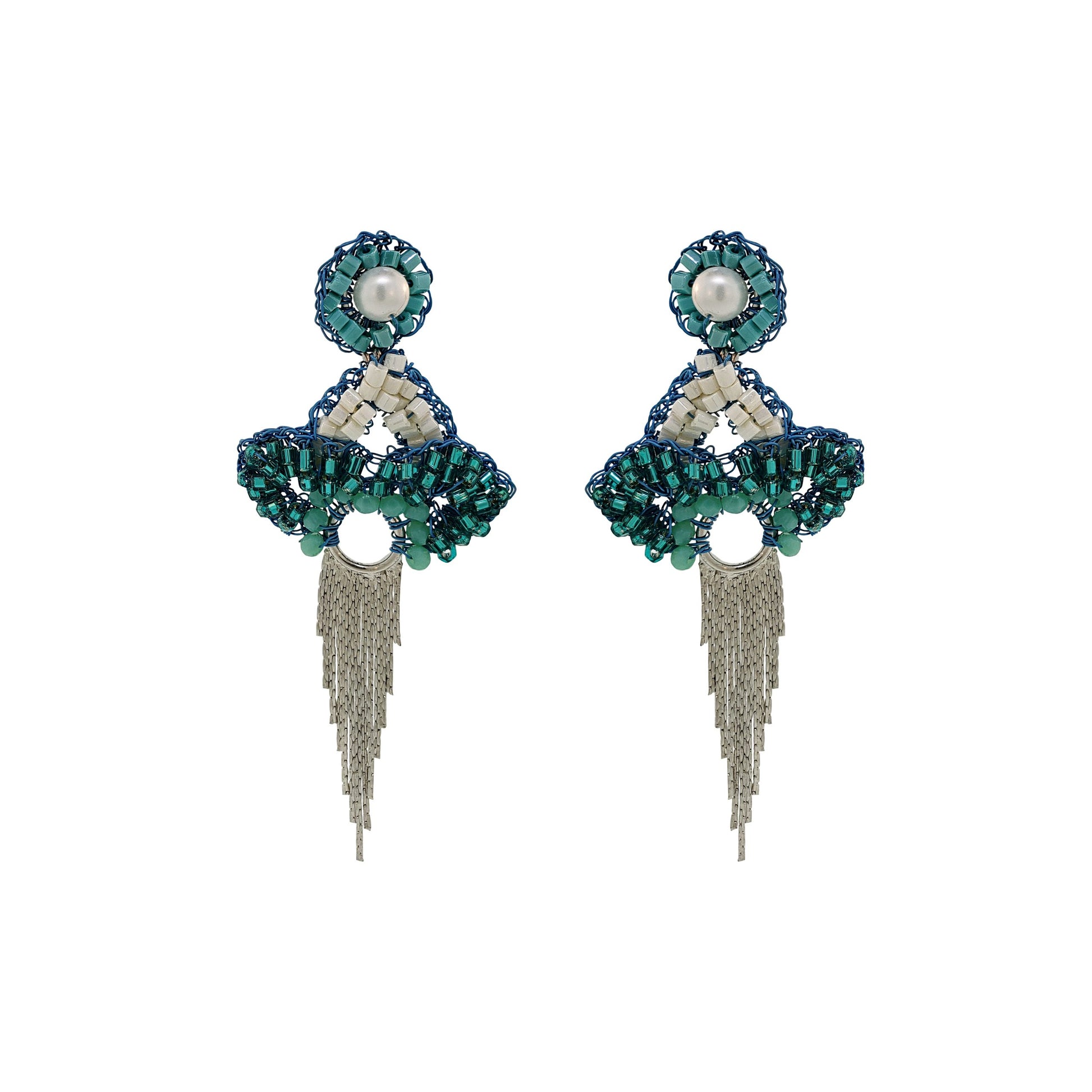 Ocean Blue Mix Mermaid Fringe Handmade Crochet Earrings