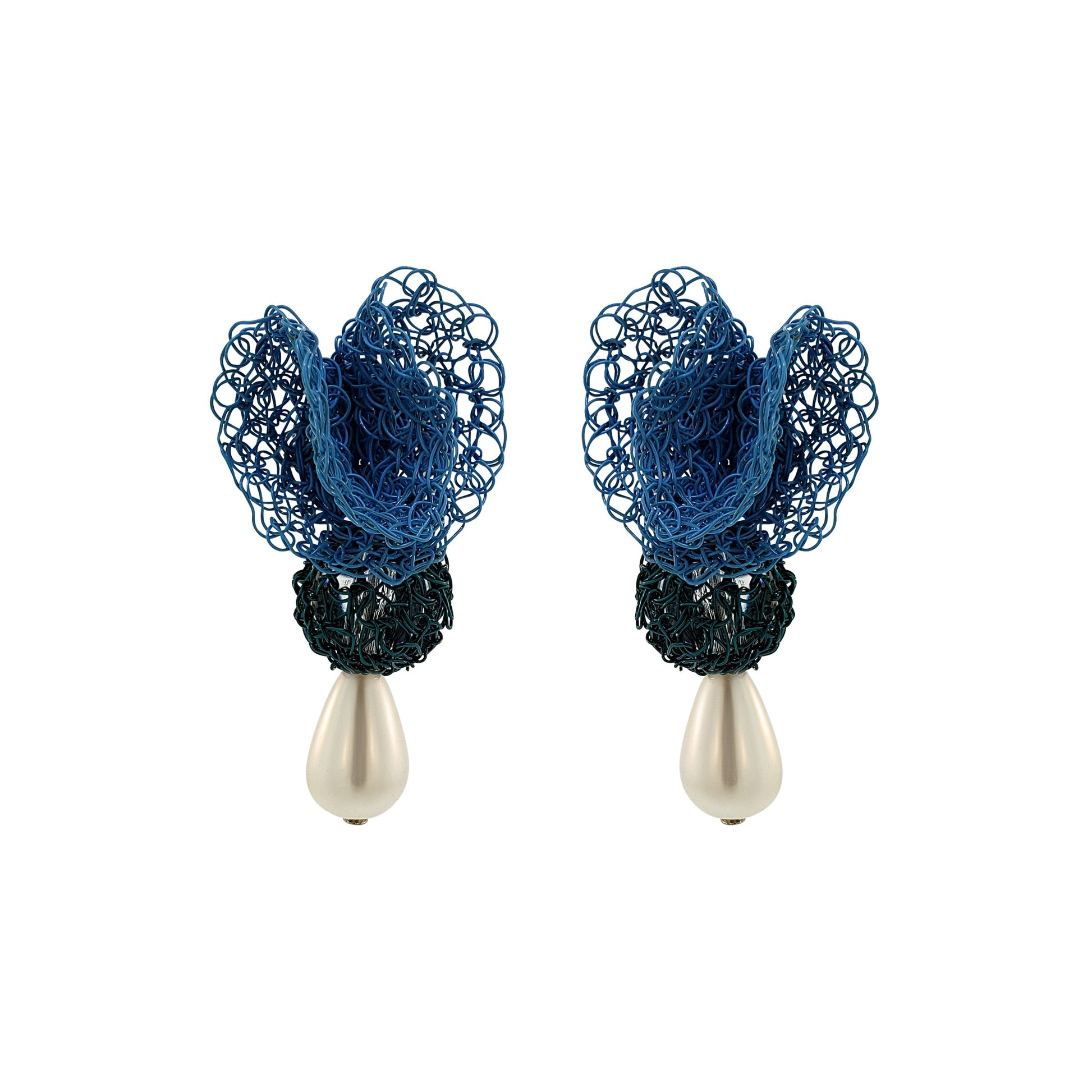 Ocean Blue Mix Reef Dangle Handmade Crochet Earrings
