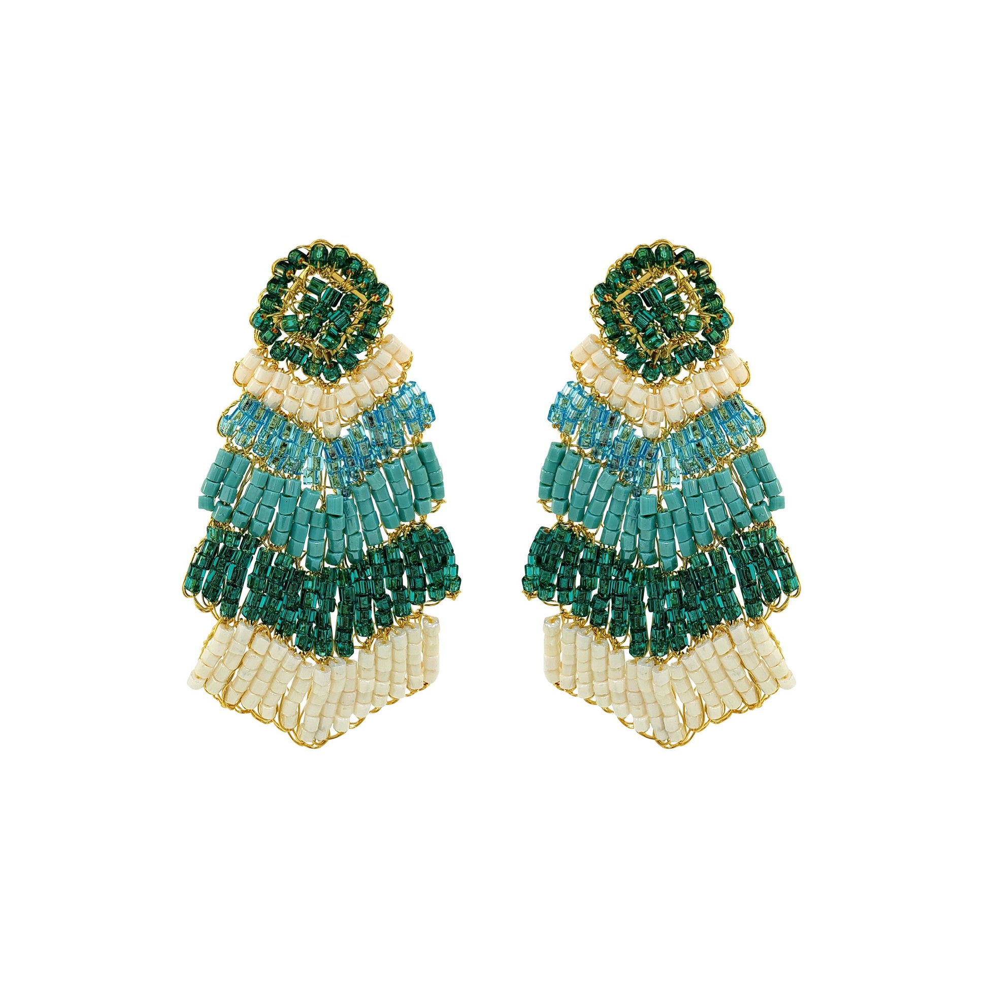 This intricate style features thin wire expertly crocheted into a beautiful and elegant geometric cascade earrings. They are made of 18 karat gold filled wire with shiny crystals and glass beads. Made from non-allergenic (hypoallergenic) and nickel-free material. Stunning jewelry that will last for a lifetime. Each pair of earrings takes hours to finish. The result is a remarkable piece of jewelry. They are 100% handmade in Brazil with 18 karat gold filled copper wire.