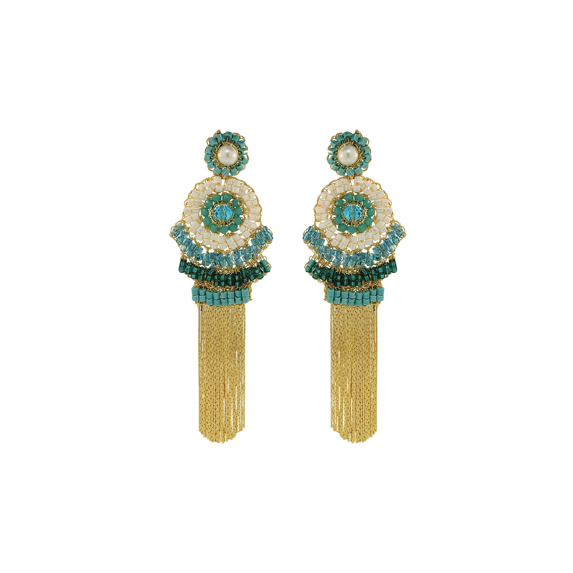 Ocean Teal Mix Ripples Fringe Handmade Crochet Earrings