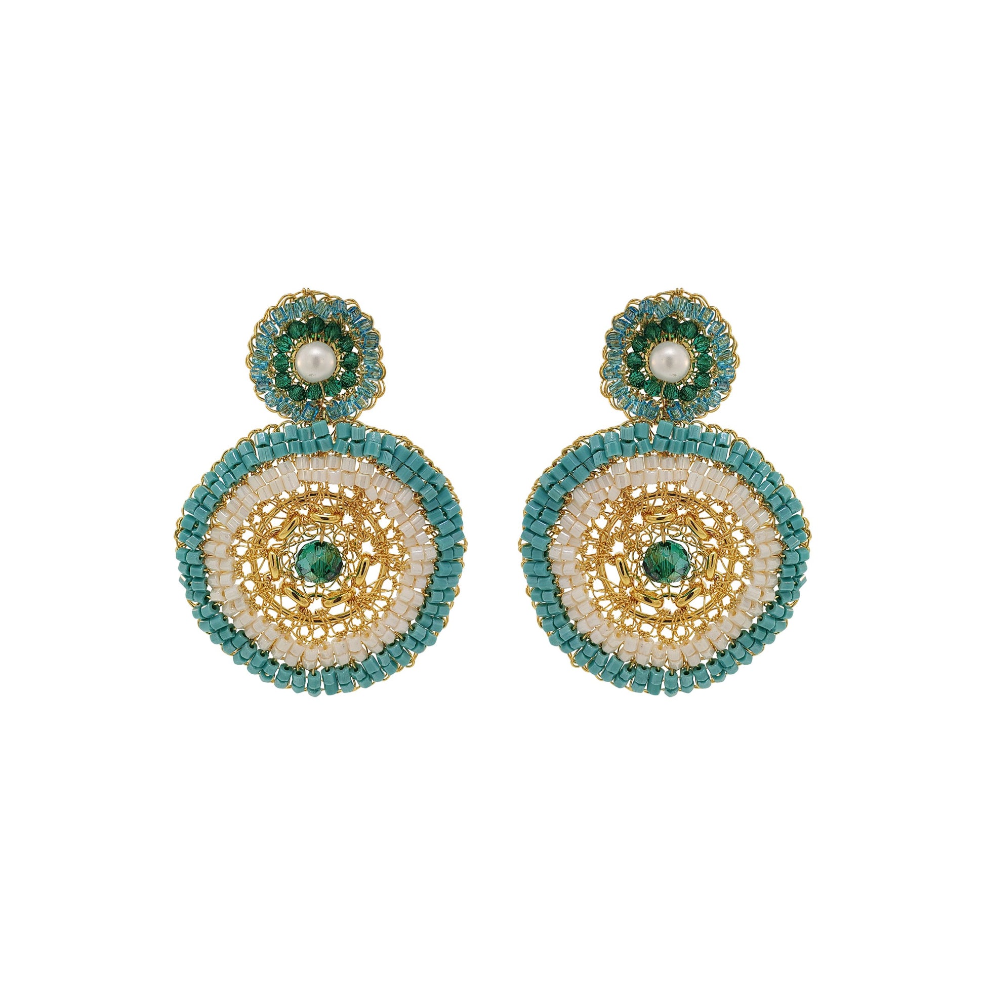 Ocean Teal Mix Ripples Handmade Crochet Earrings