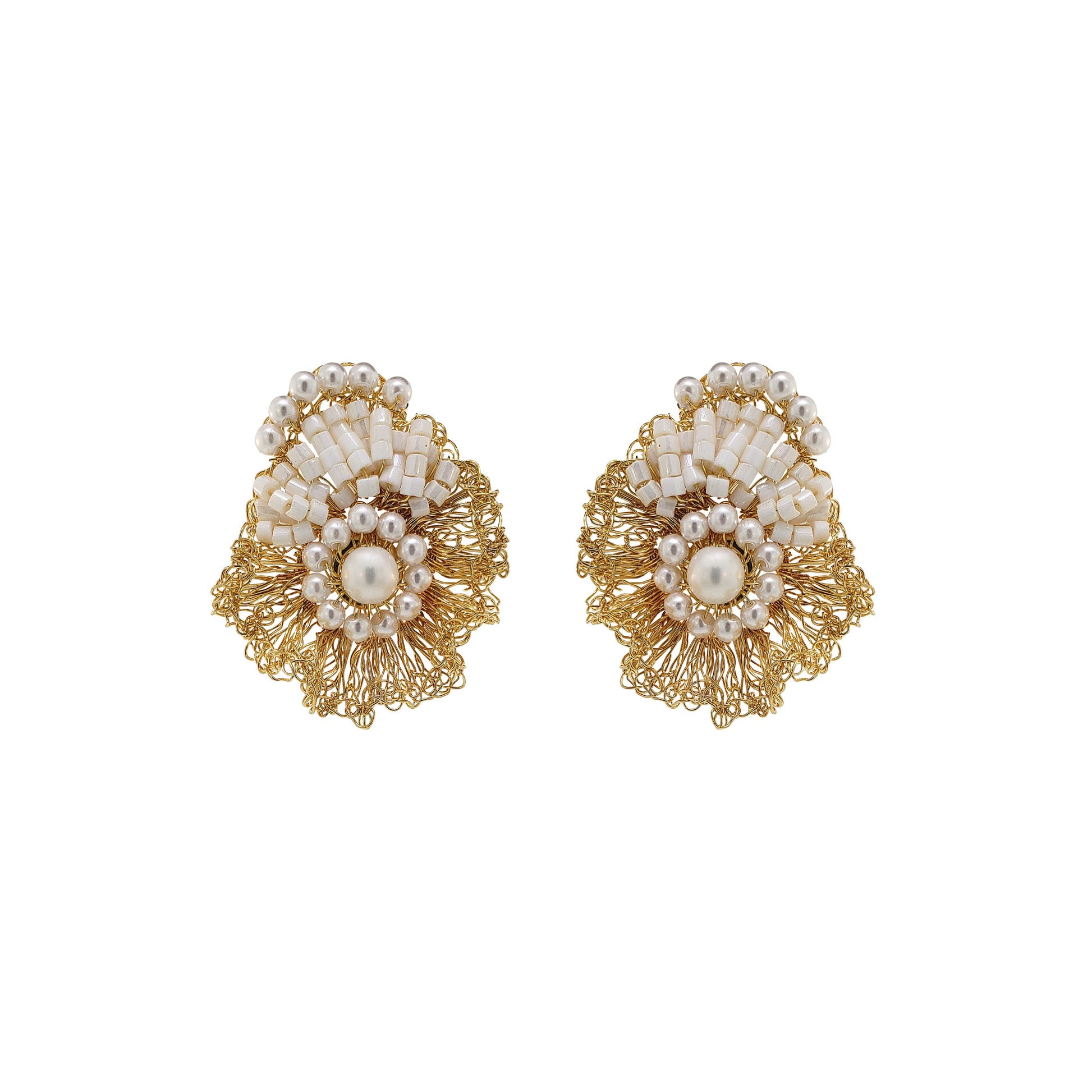 Pearl & Gold Crown Mini Posts Handmade Crochet Earrings