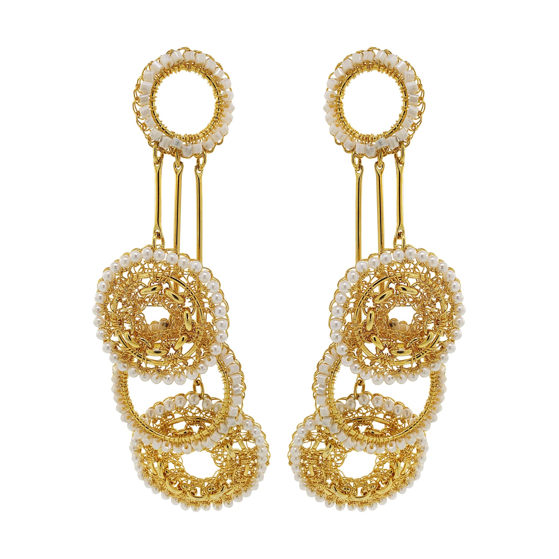 Pearl & Gold Flux Chandelier Handmade Crochet Earrings