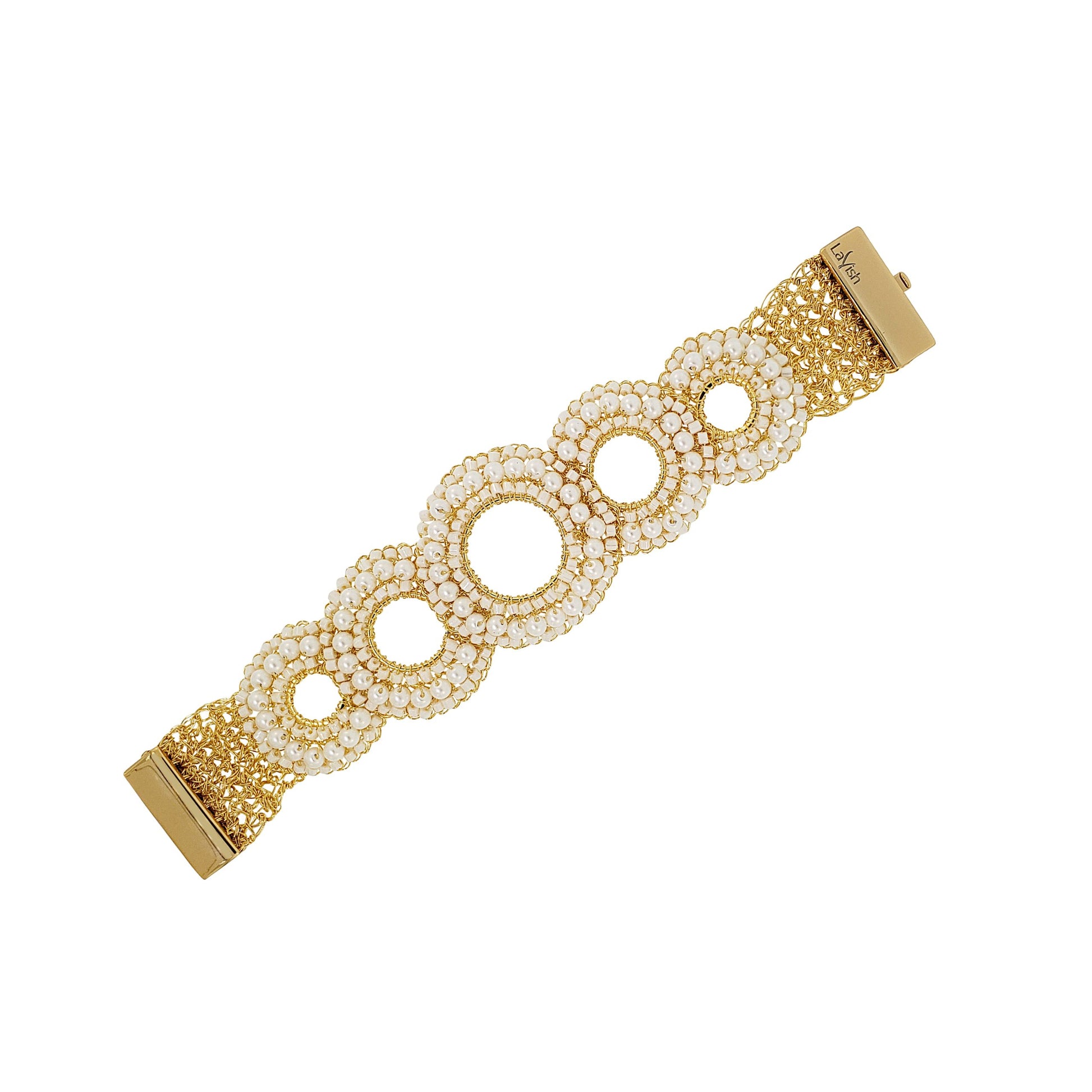Pearl & Gold Gush Handmade Crochet Bracelet