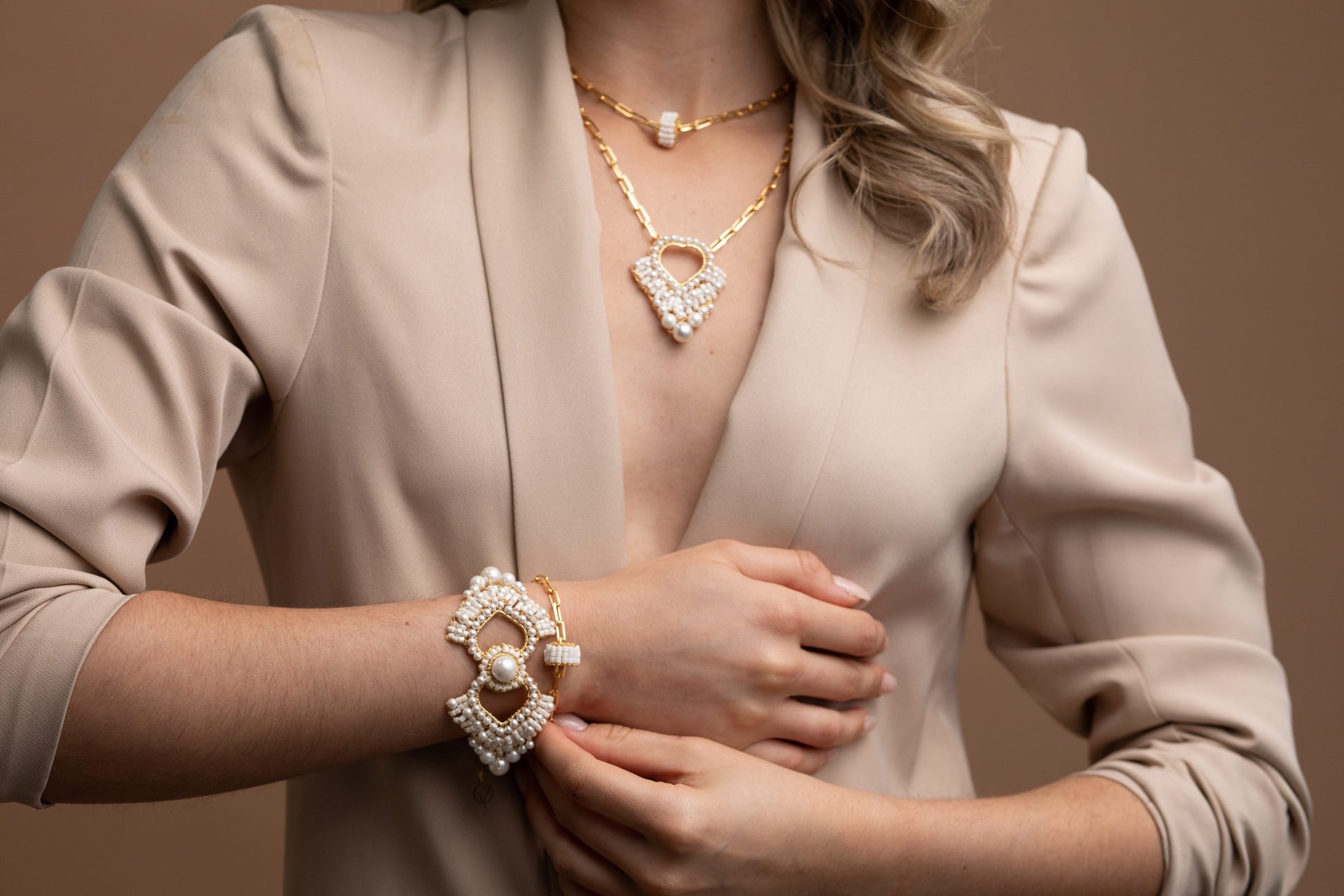 Pearl & Gold High Roller Handmade Crochet Necklace