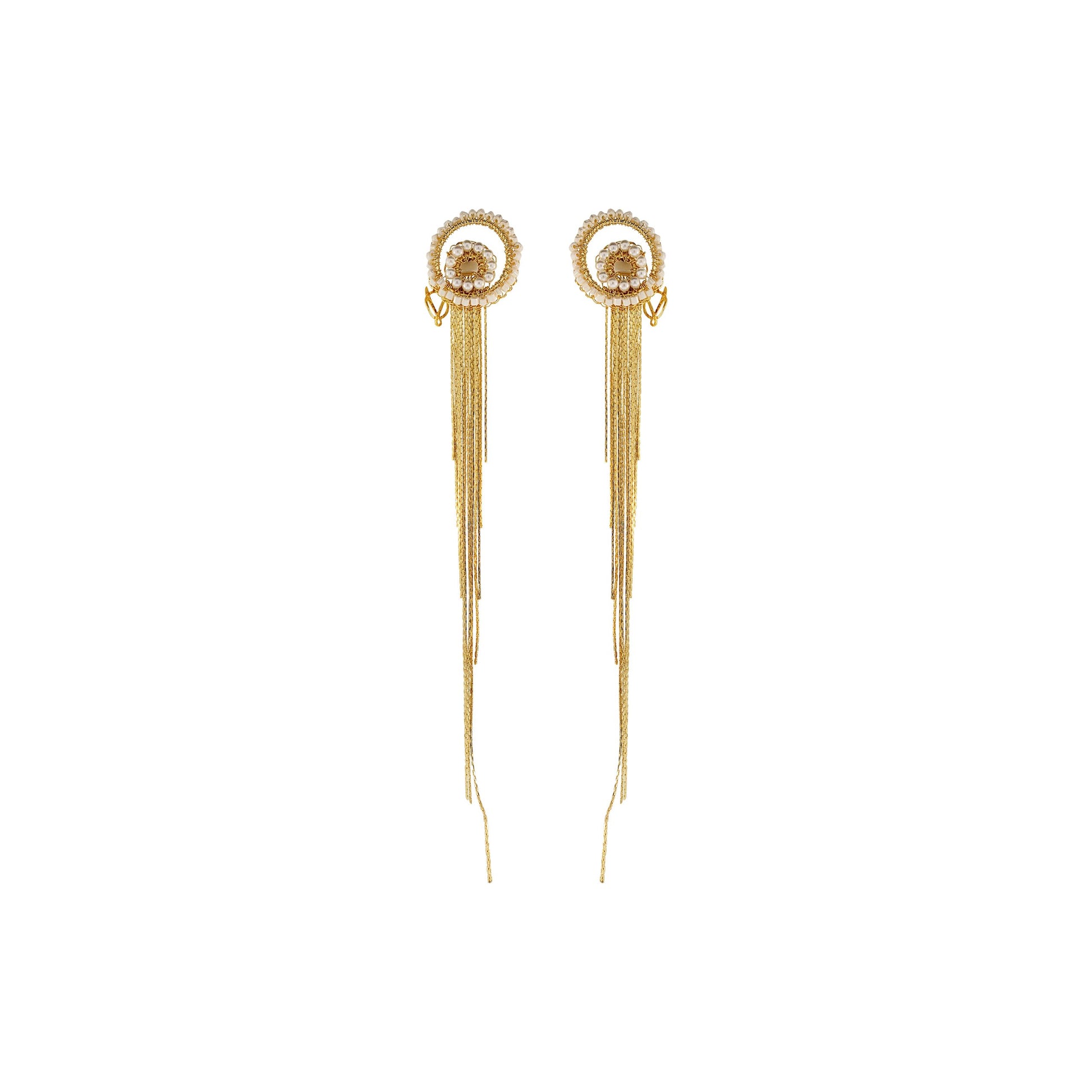 Pearl & Gold Opal Fringe Handmade Crochet Earrings