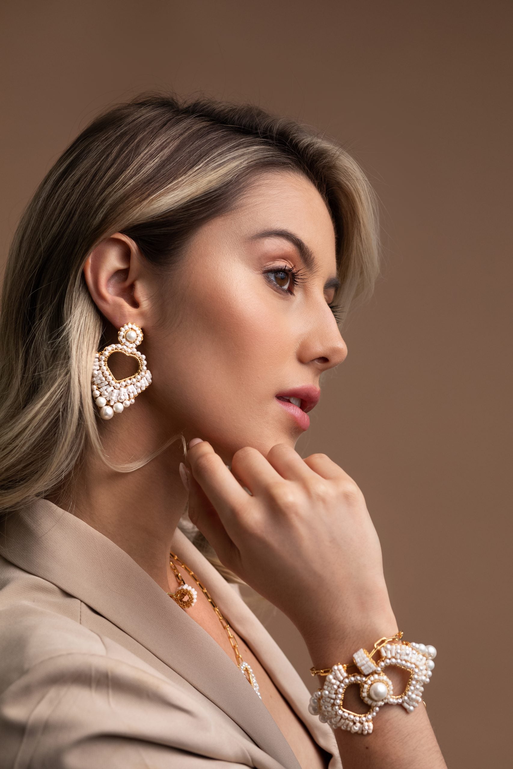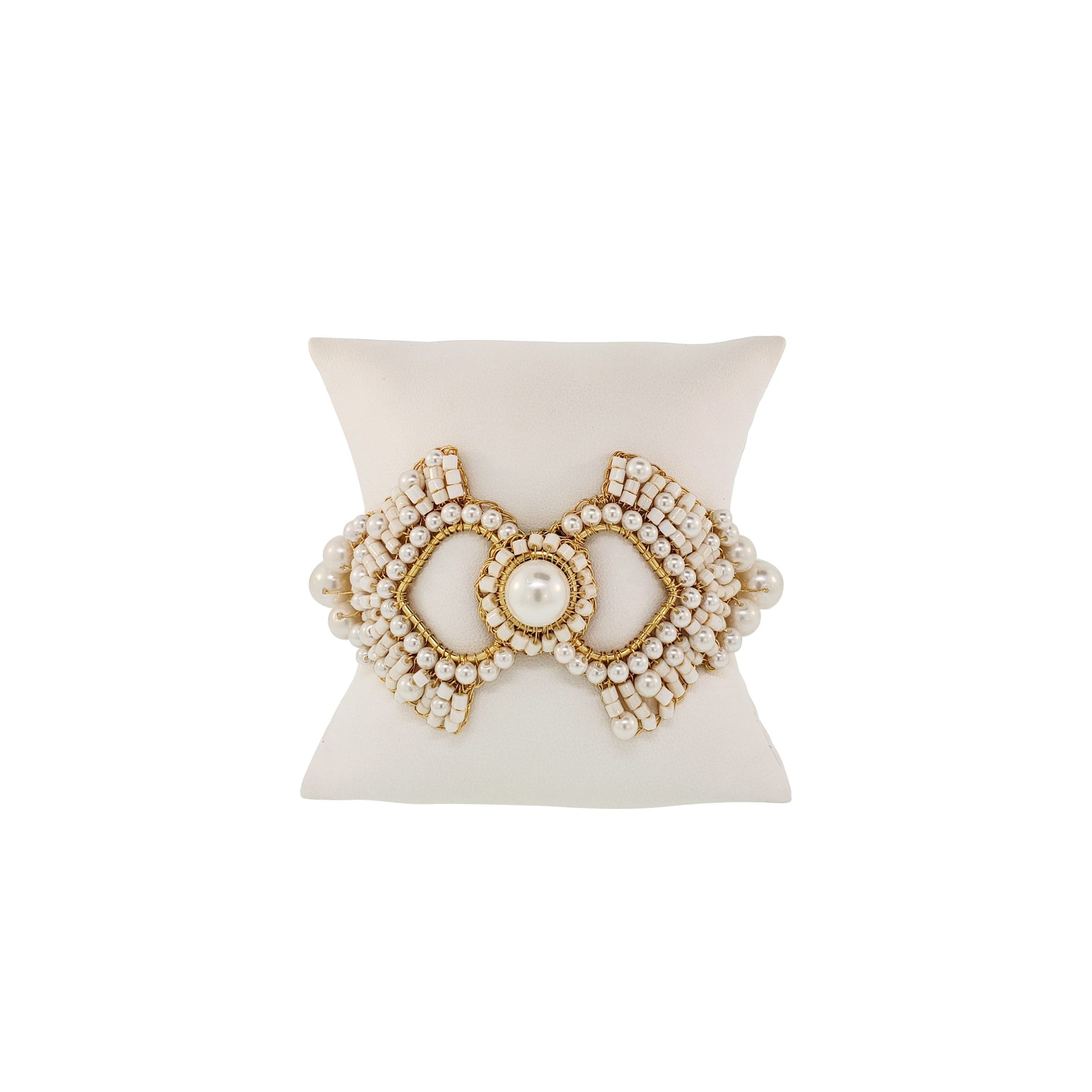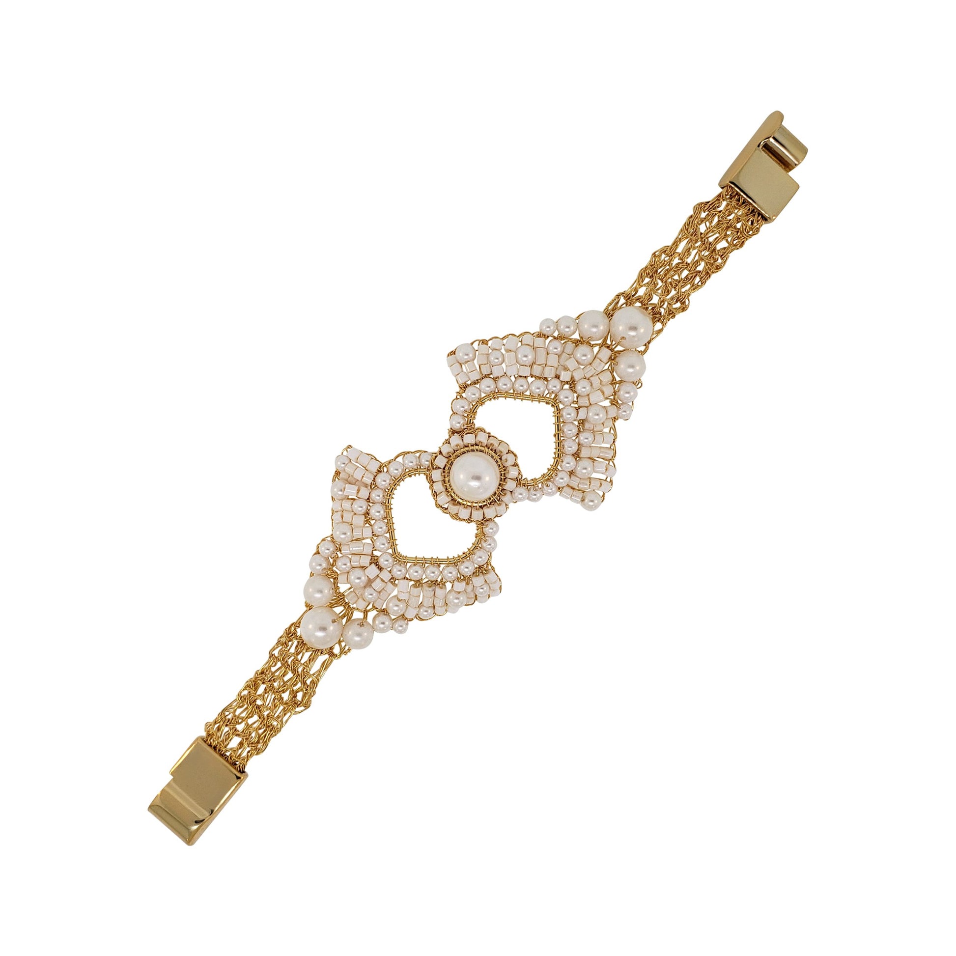 Pearl & Gold Queen's Heart Handmade Crochet Bracelet