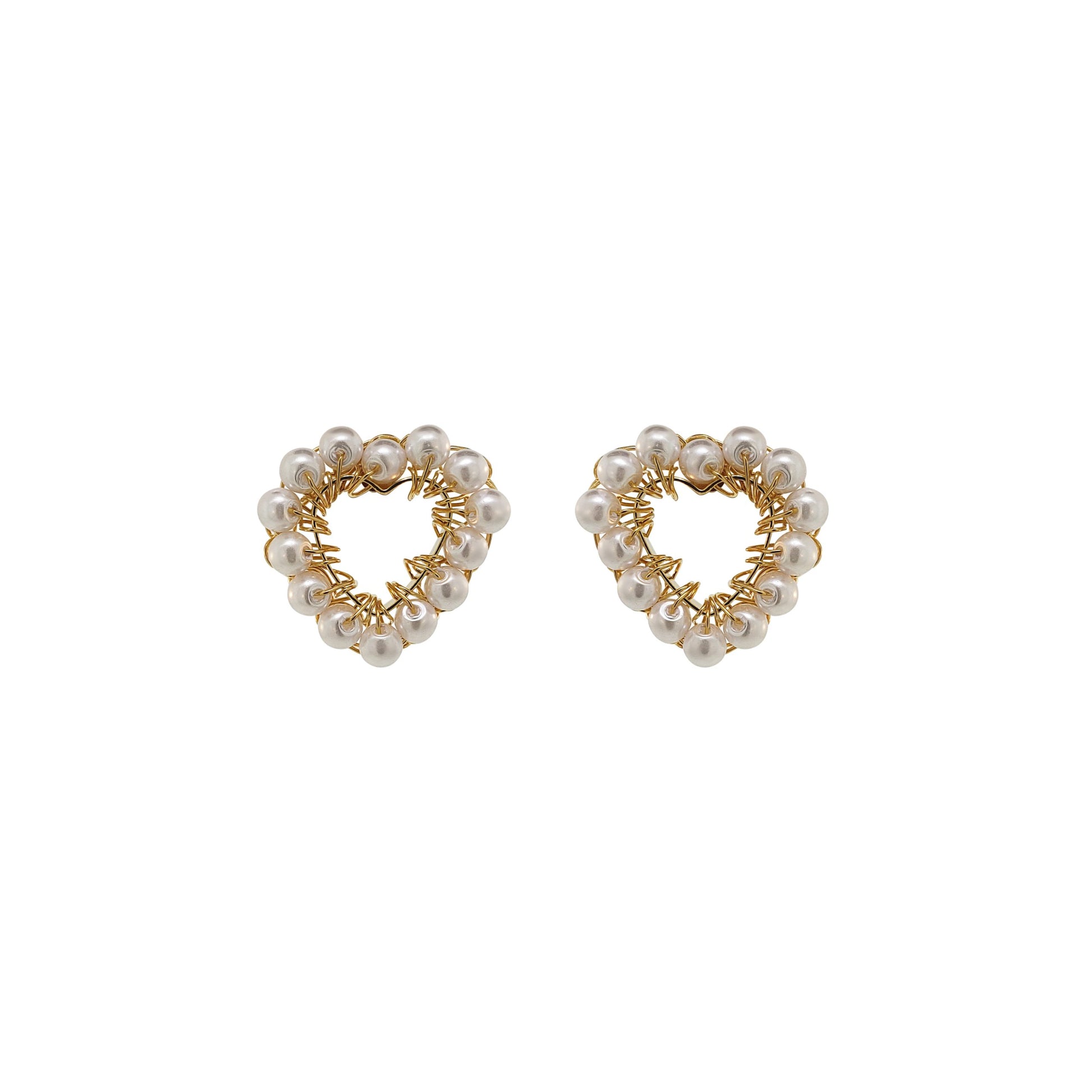 Pearl & Gold Queen's Mini Posts Handmade Crochet Earrings