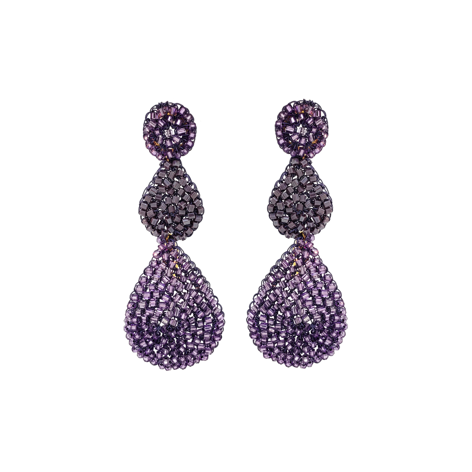 Purple Double Teardrop Cascade Handmade Crochet Earrings