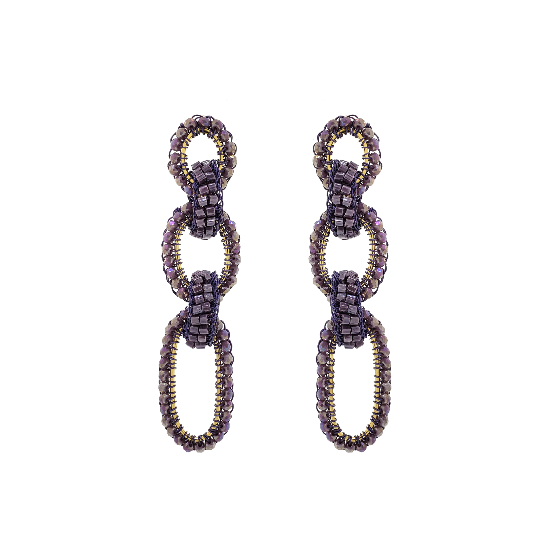 These hand-crocheted, multi links earrings were fabricated by skilled Brazilian artisans. The shiny crystals and gold wire is supplemental to the fine craft artwork spent in every piece of our jewelry. They feature enameled copper wire. Made from non-allergenic (hypoallergenic) and nickel-free materials. Stunning jewelry that will last for a lifetime. Each pair of earrings takes hours to finish. The result is a remarkable piece of jewelry. This piece is entirely handmade in Brazil.