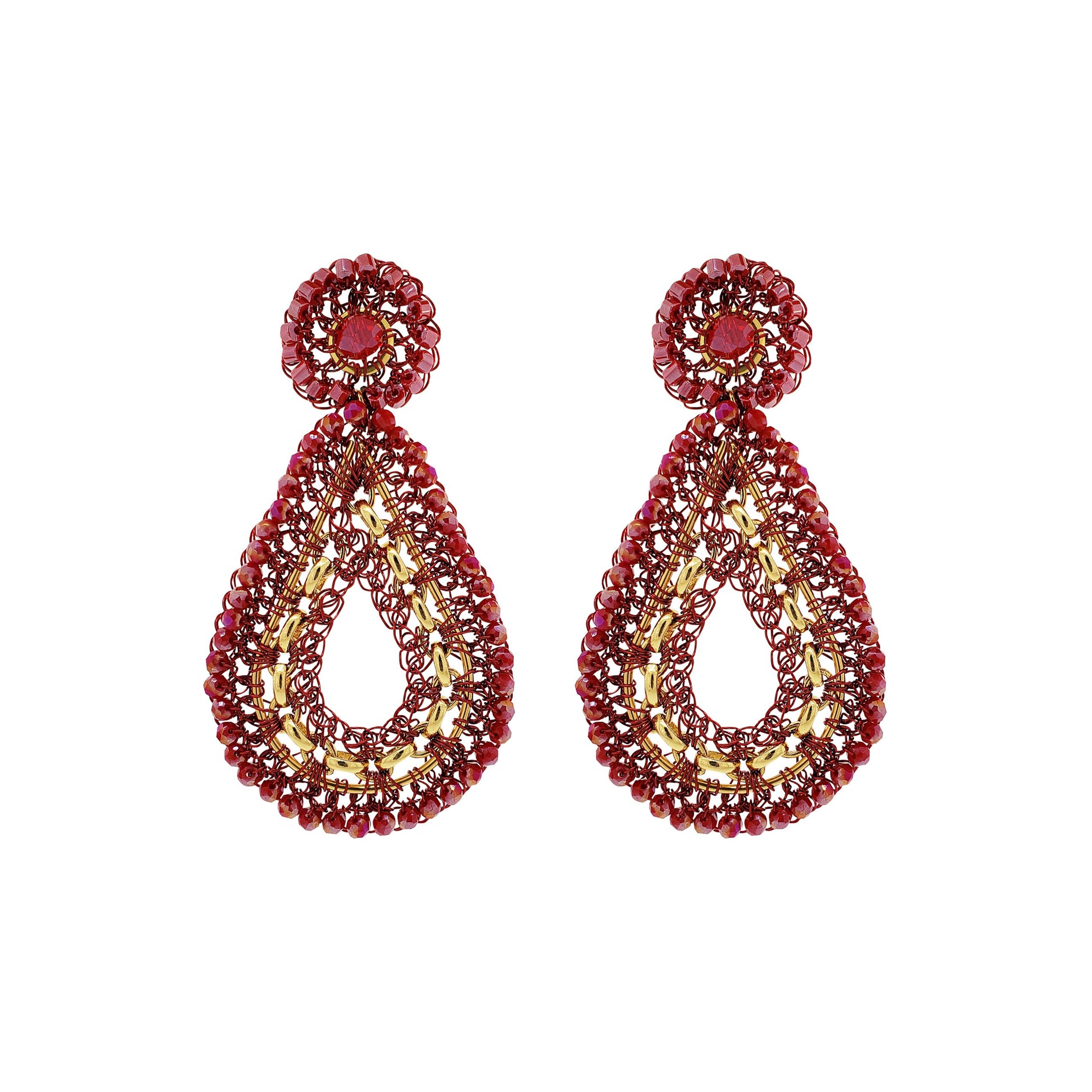 Red & Gold Flux Teardrop Handmade Crochet Earrings
