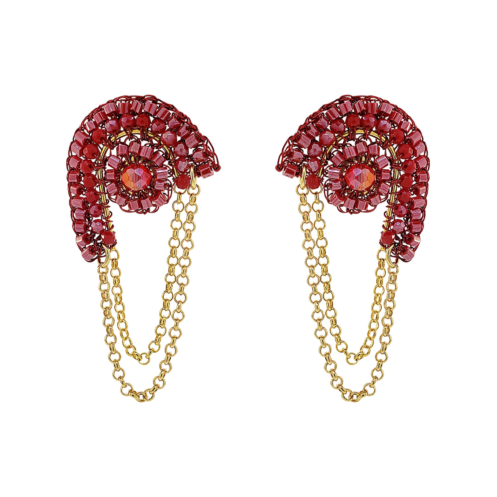 Red & Gold Freya Handmade Crochet Earrings