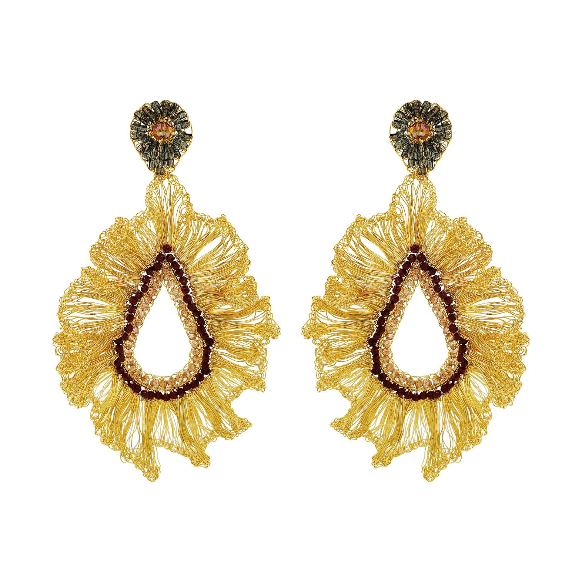 Red & Gold Ruffled Teardrop Handmade Crochet Large Earrings