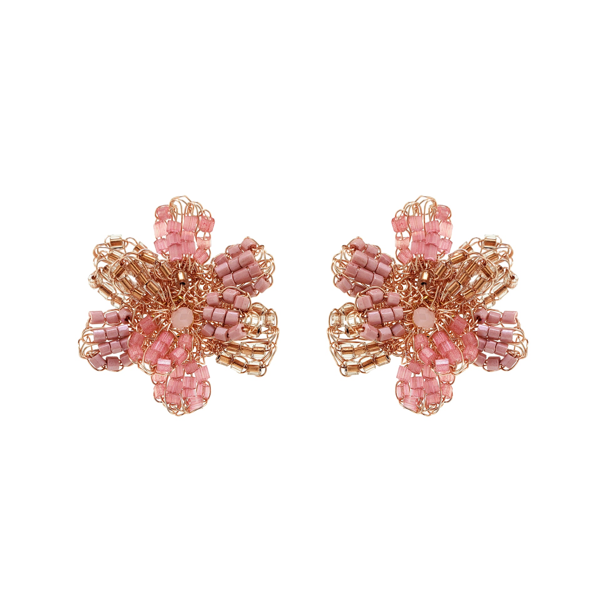 Rose Quartz Mix Aster Post Handmade Crochet Earrings