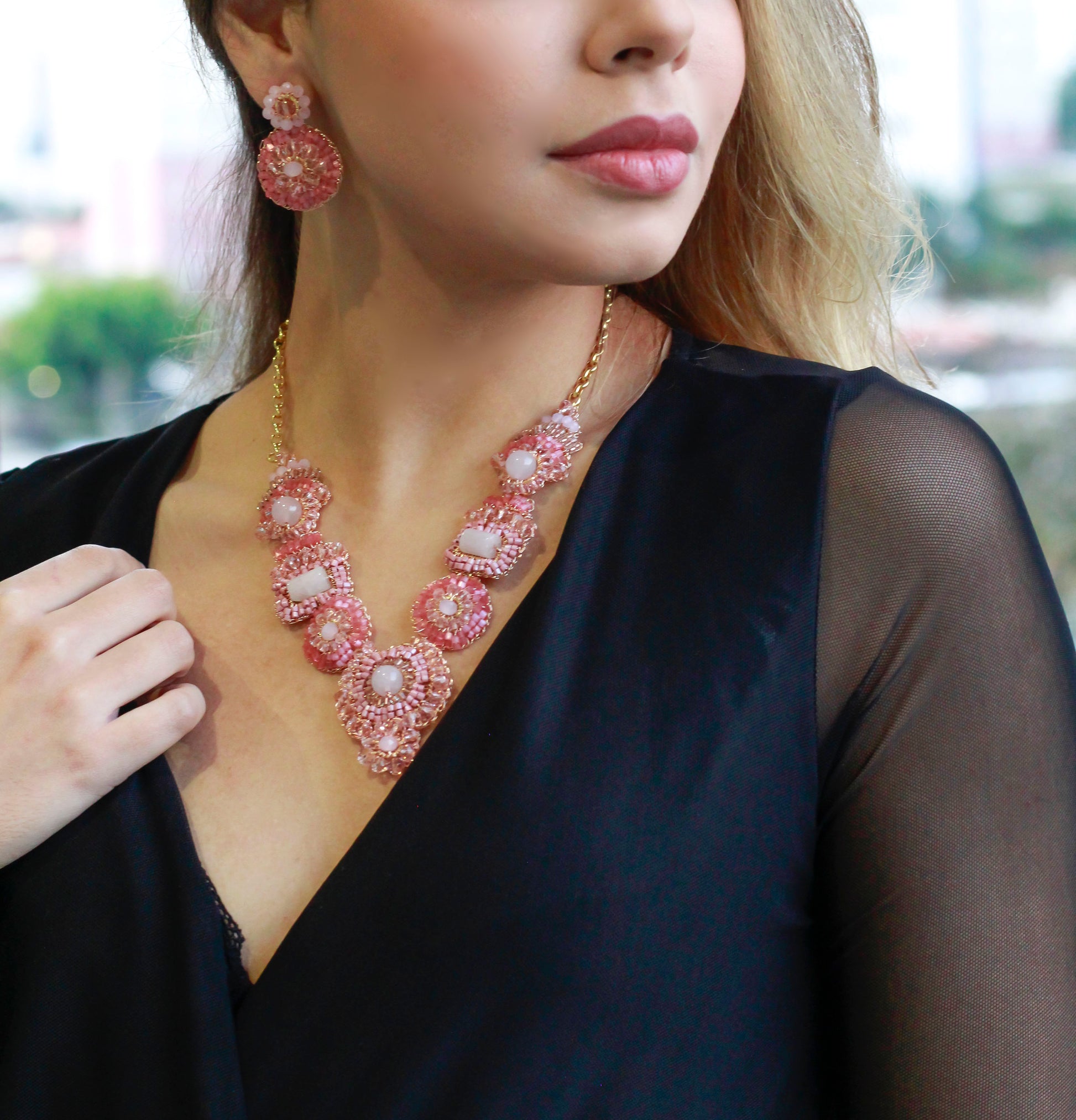 Rose Quartz Mix Elara Handmade Crochet Necklace