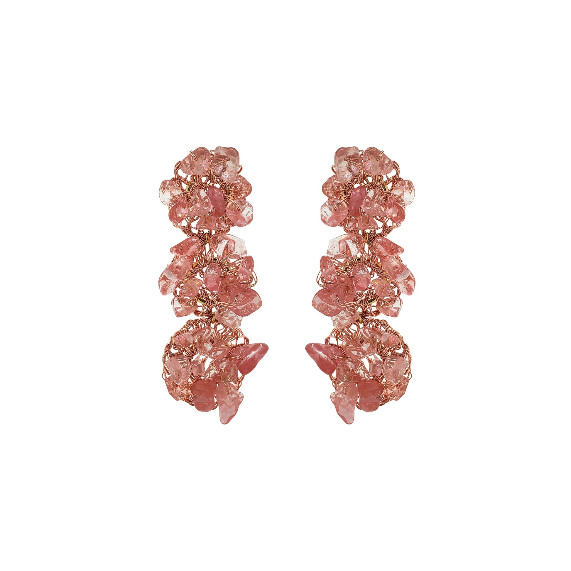 Rose Quartz Mix Rocks Cluster Handmade Crochet Earrings