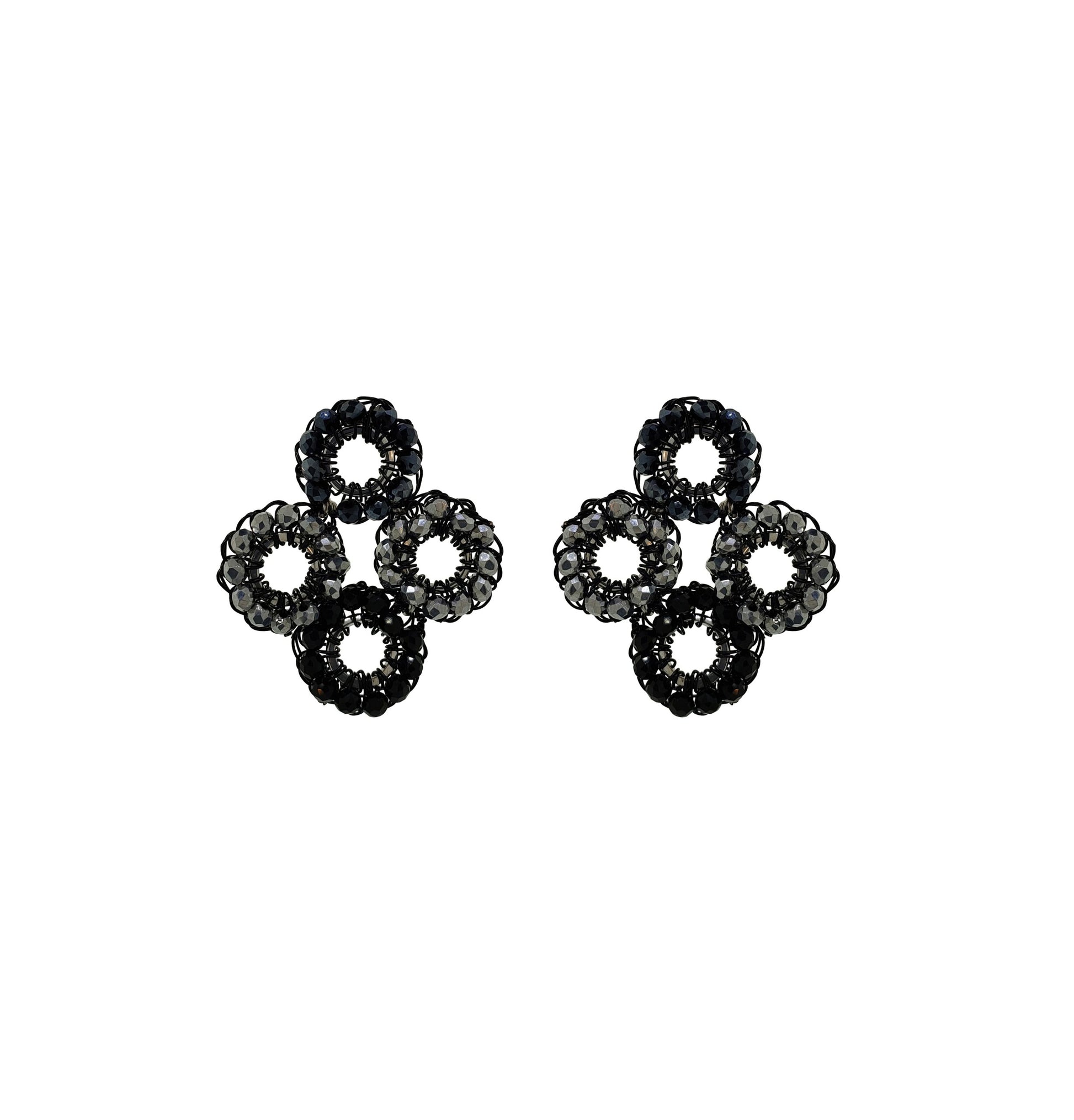 Royal Black Mix Clubs Handmade Crochet Earrings