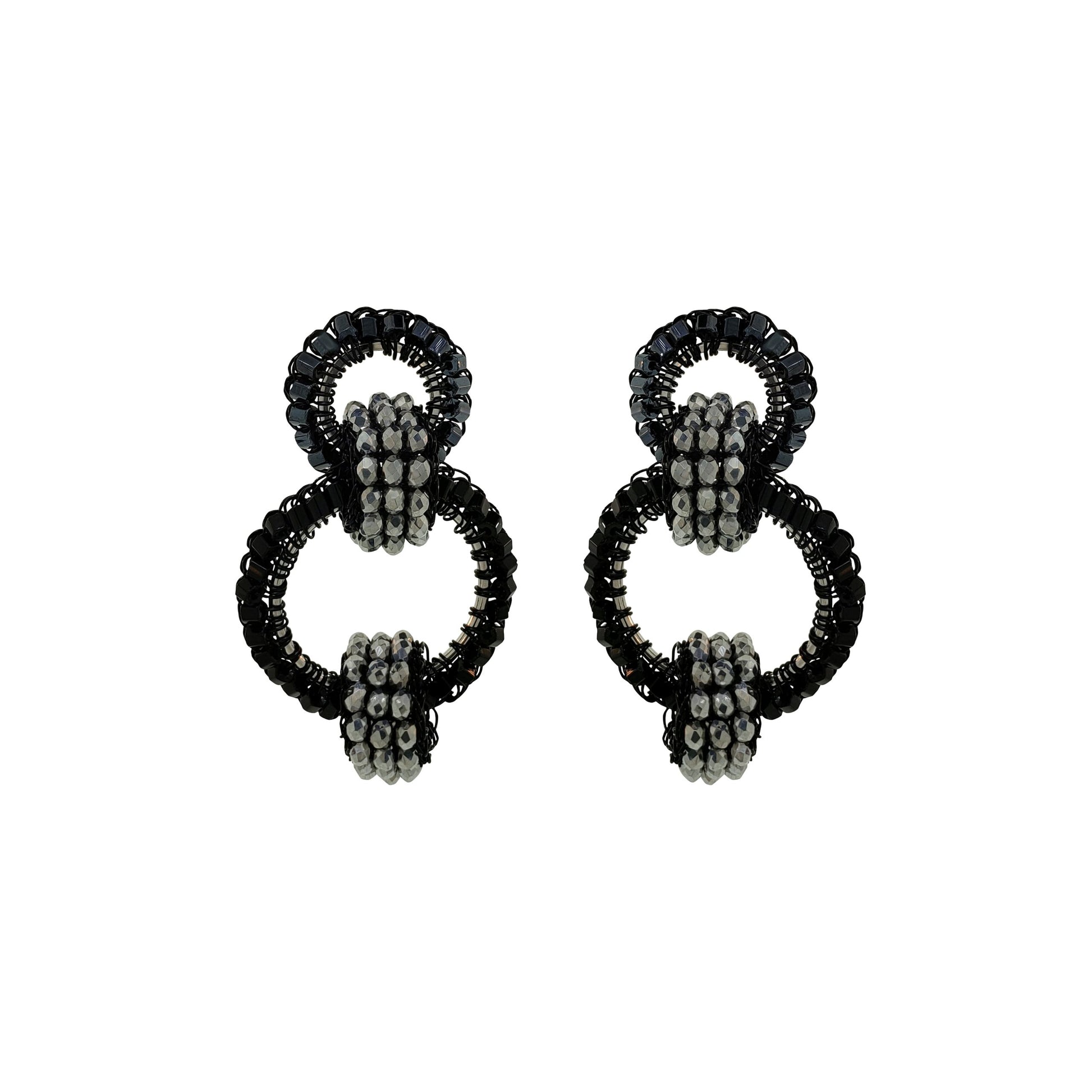 Royal Black Mix High Roller Duo Handmade Crochet Earrings
