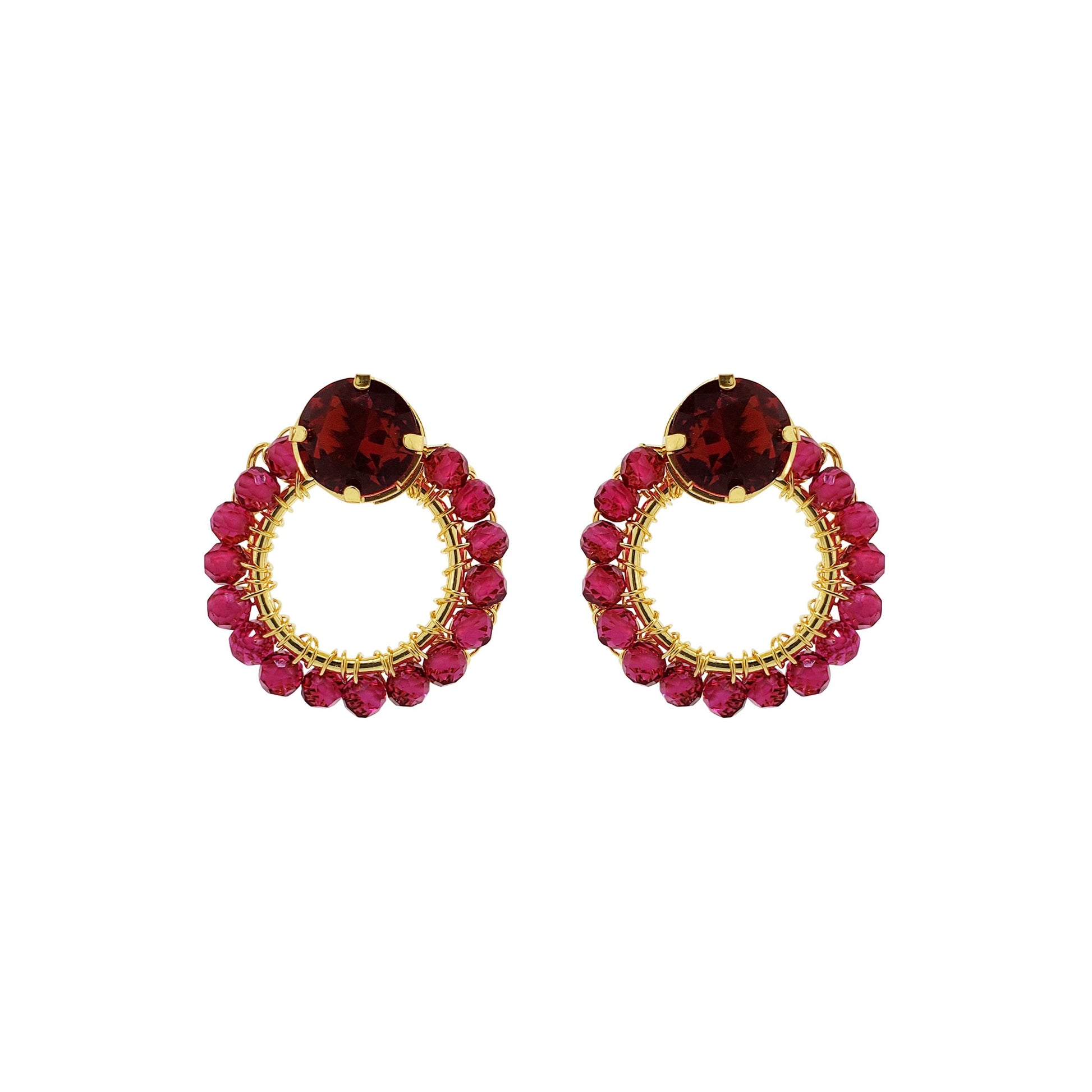 Ruby Red & Gold Lena Mini Post Handmade Crochet Earrings