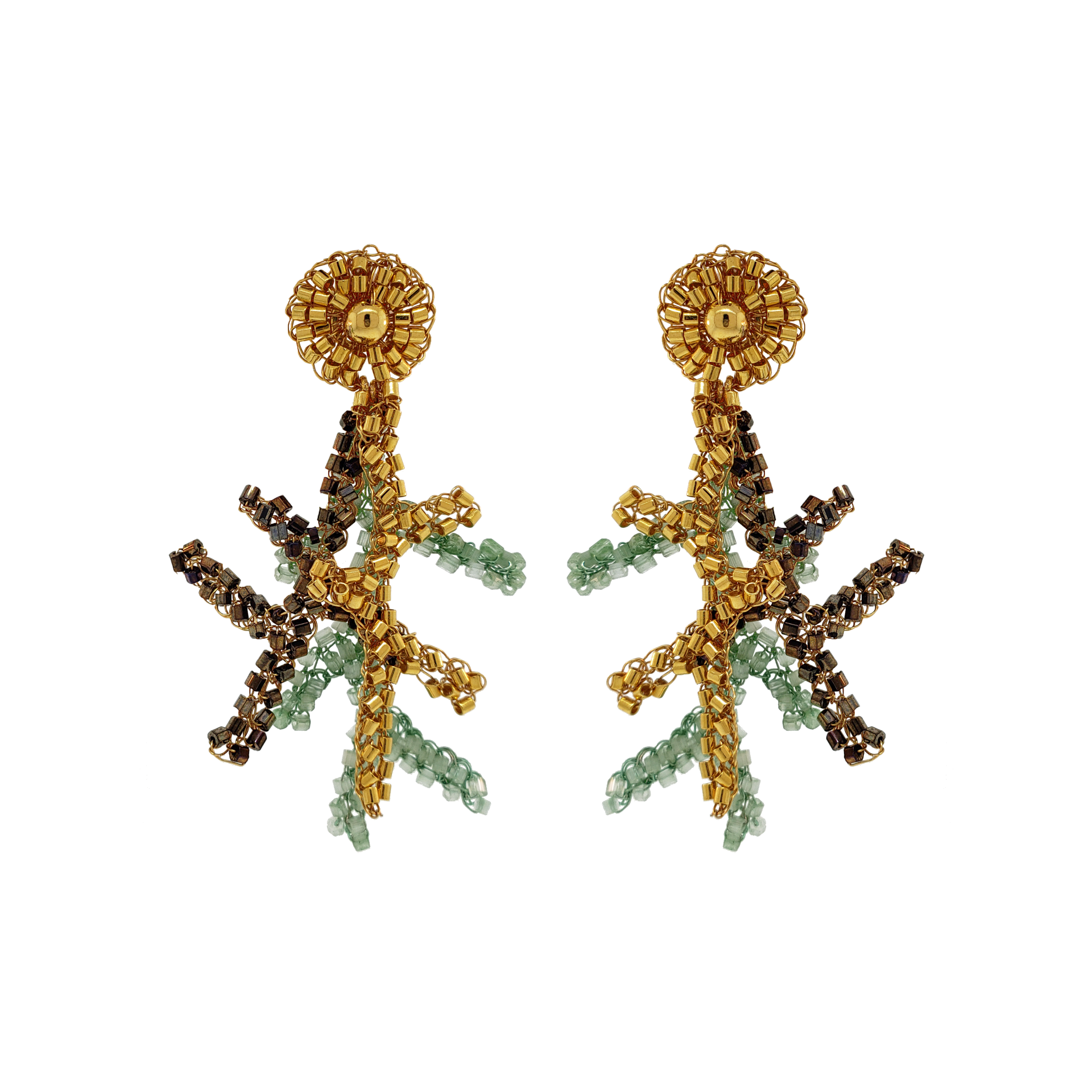 Savage Green and Gold Mix Coral Handmade Crochet Earrings