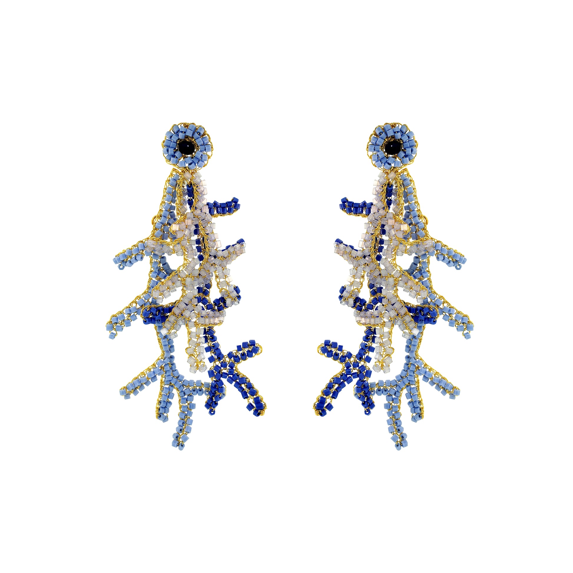Sky Blue Mix Coral Branches Long Handmade Crochet Earrings