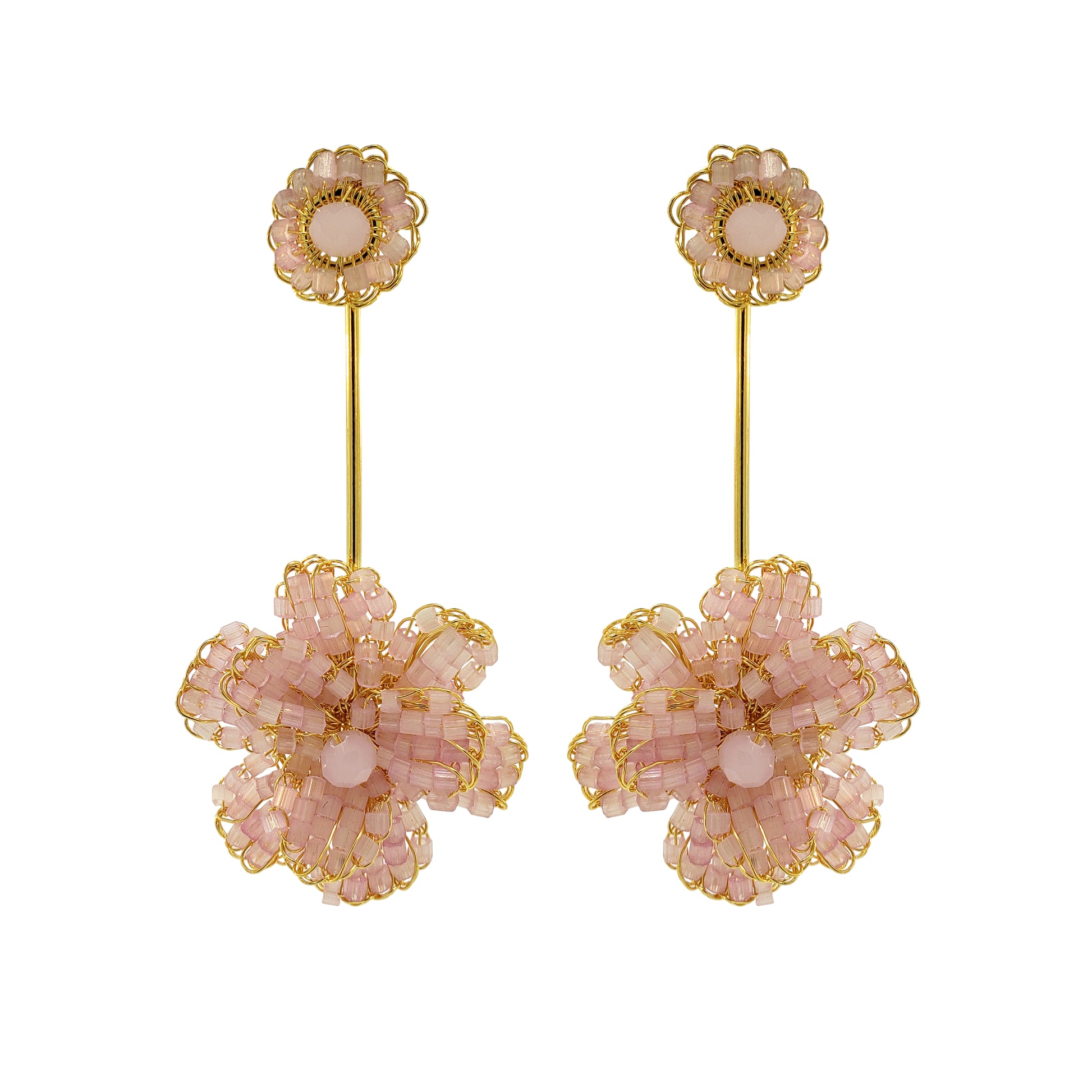 Soft Pink & Gold Blossom Drop Handmade Crochet Earrings