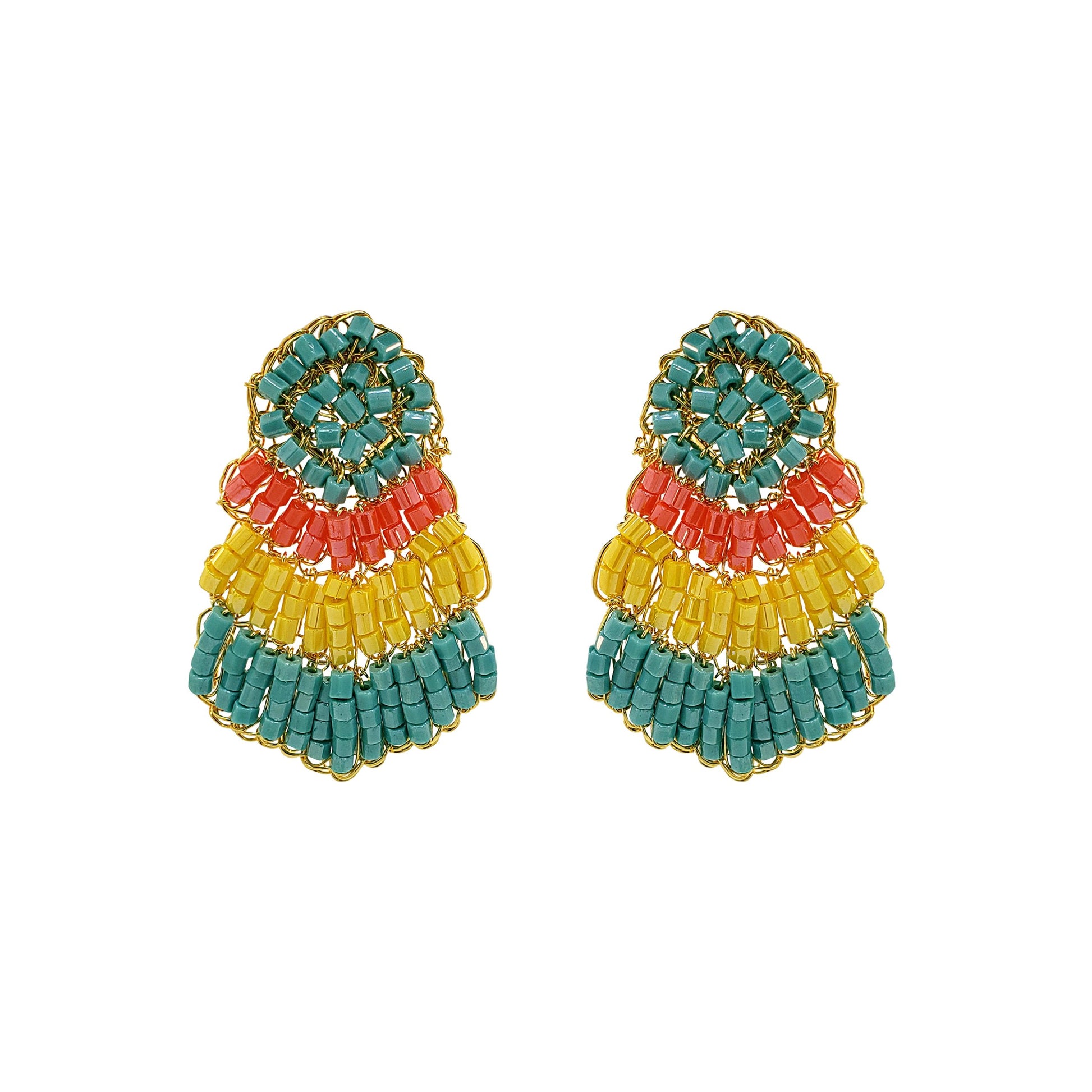 This intricate style features thin wire expertly crocheted into a beautiful and elegant mini cascade earrings. They are made of 18 karat gold filled wire with shiny crystals and glass beads. Made from non-allergenic (hypoallergenic) and nickel-free material. Stunning jewelry that will last for a lifetime. Each pair of earrings takes hours to finish. The result is a remarkable piece of jewelry. They are 100% handmade in Brazil with 18 karat gold filled copper wire.