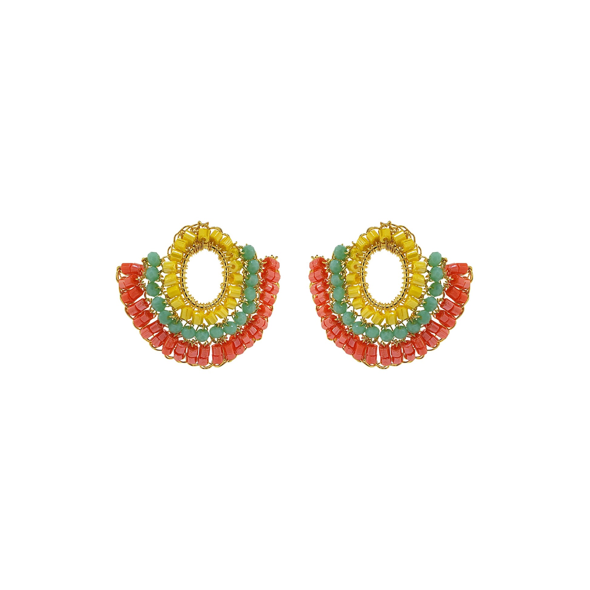 These hand-crocheted post earrings were fabricated by skilled Brazilian artisans. They are very modern and comfortable to wear. The sparkling combination of beads are supplemental to the fine craft artwork spent in every piece of our jewellery.