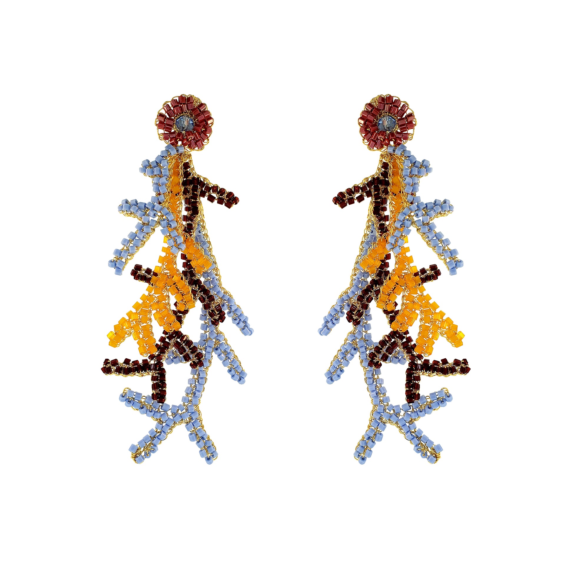 Sunrise Mix Coral Branches Long Handmade Crochet Earrings