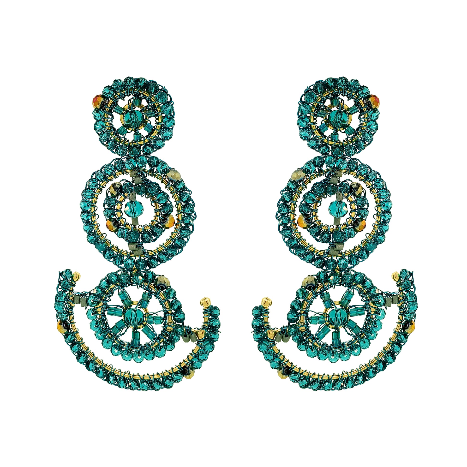These striking handmade maxi cascade earrings are crafted by skilled Brazilian artisans using enameled wire and dazzling turquoise and teal crystals. The intricate crochet design blends circular and geometric shapes, creating a modern and elegant statement piece. Lightweight, hypoallergenic, and nickel-free — these earrings combine craftsmanship, comfort, and timeless beauty. Stunning jewelry that will last for a lifetime.