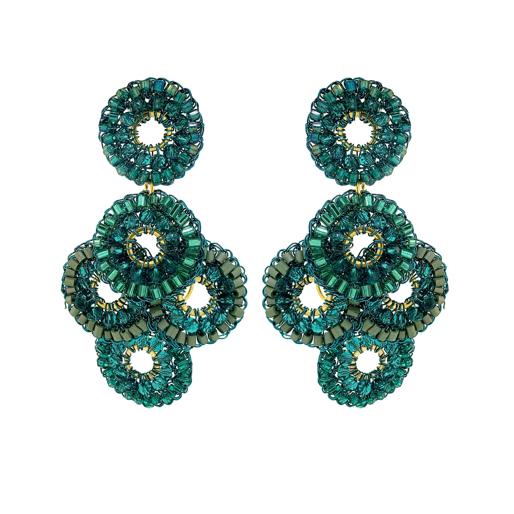 These crystal mandalas chandeliers and hand-crocheted earrings were made by highly skilled Brazilian artisans. The shiny enameled wire crochet earrings create a stunning look without being big or bulky. These romantic earrings are light, comfortable, and can be worn on any occasion. Made with hypoallergenic and nickel-free materials. Stunning jewelry that will last for a lifetime.