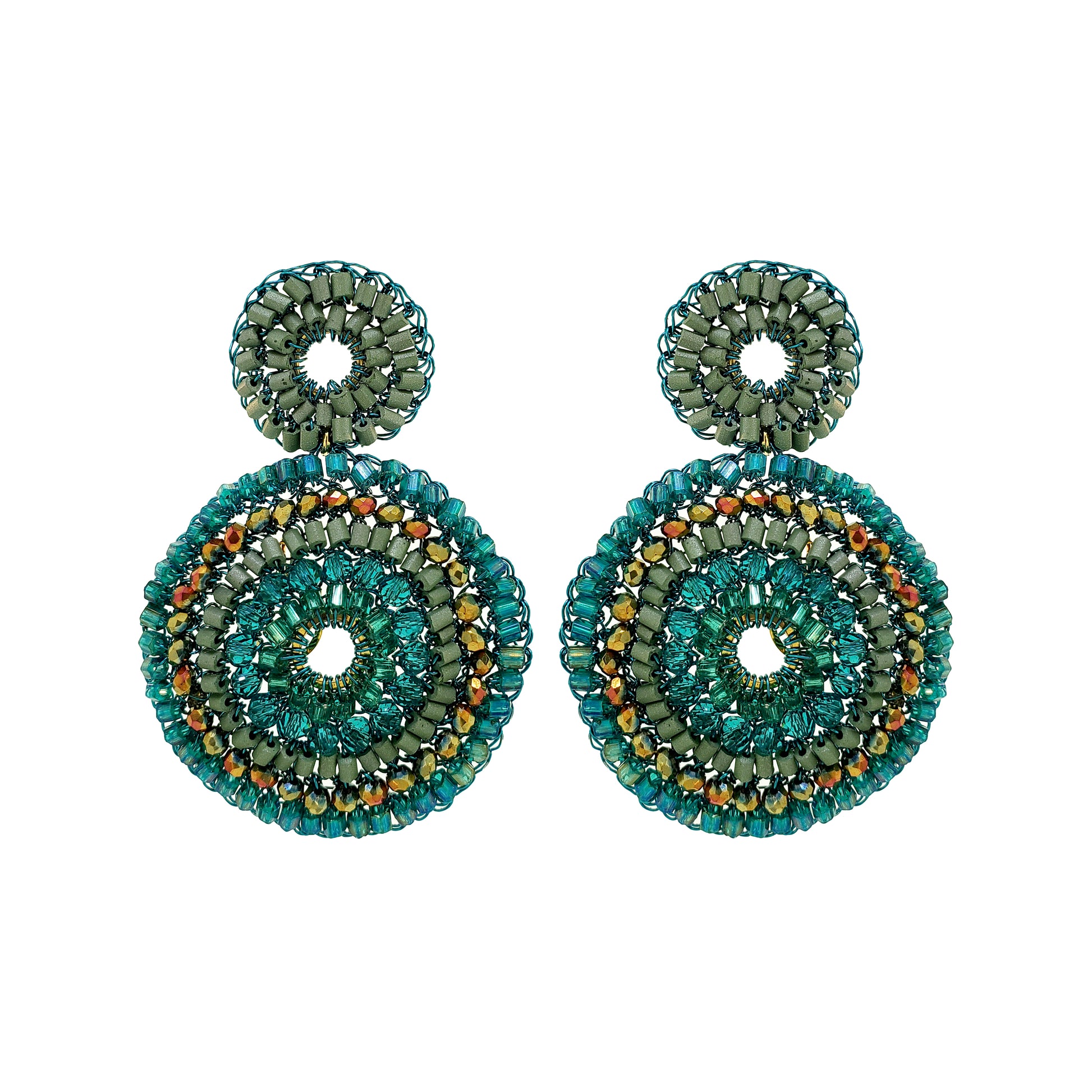 These double mandala, hand-crocheted cascade earrings were created by skilled Brazilian artisans. They are made with enameled wire and they make a statement without the weight or bulk! Made with hypoallergenic materials and nickel-free. Stunning jewelry that will last for a lifetime.