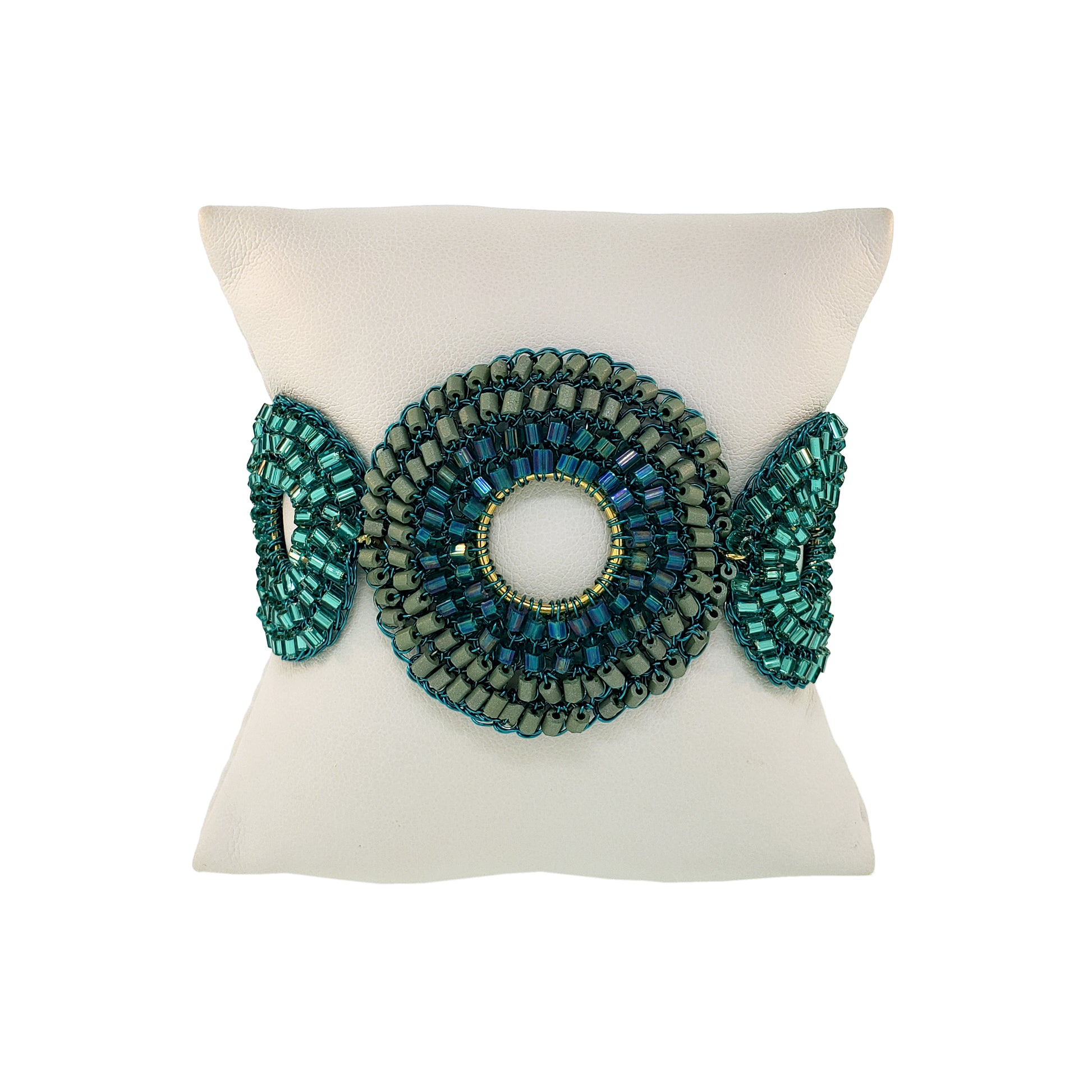This hand-crocheted cuff was fabricated by skilled Brazilian artisans. The shiny enameled wire creates a statement look without weight or bulk! They are very comfortable to wear, light and can be worn in every occasion: day-to-night and casual-to-special. The sparkling crystals and beads are supplemental to the fine craft artwork spent in every piece of my jewelry. Made from non-allergenic (hypoallergenic) and nickel-free material. Stunning jewelry that will last for a lifetime. The magnetic clap makes this bracelet easier to get on and off. The result is a remarkable piece of jewelry.