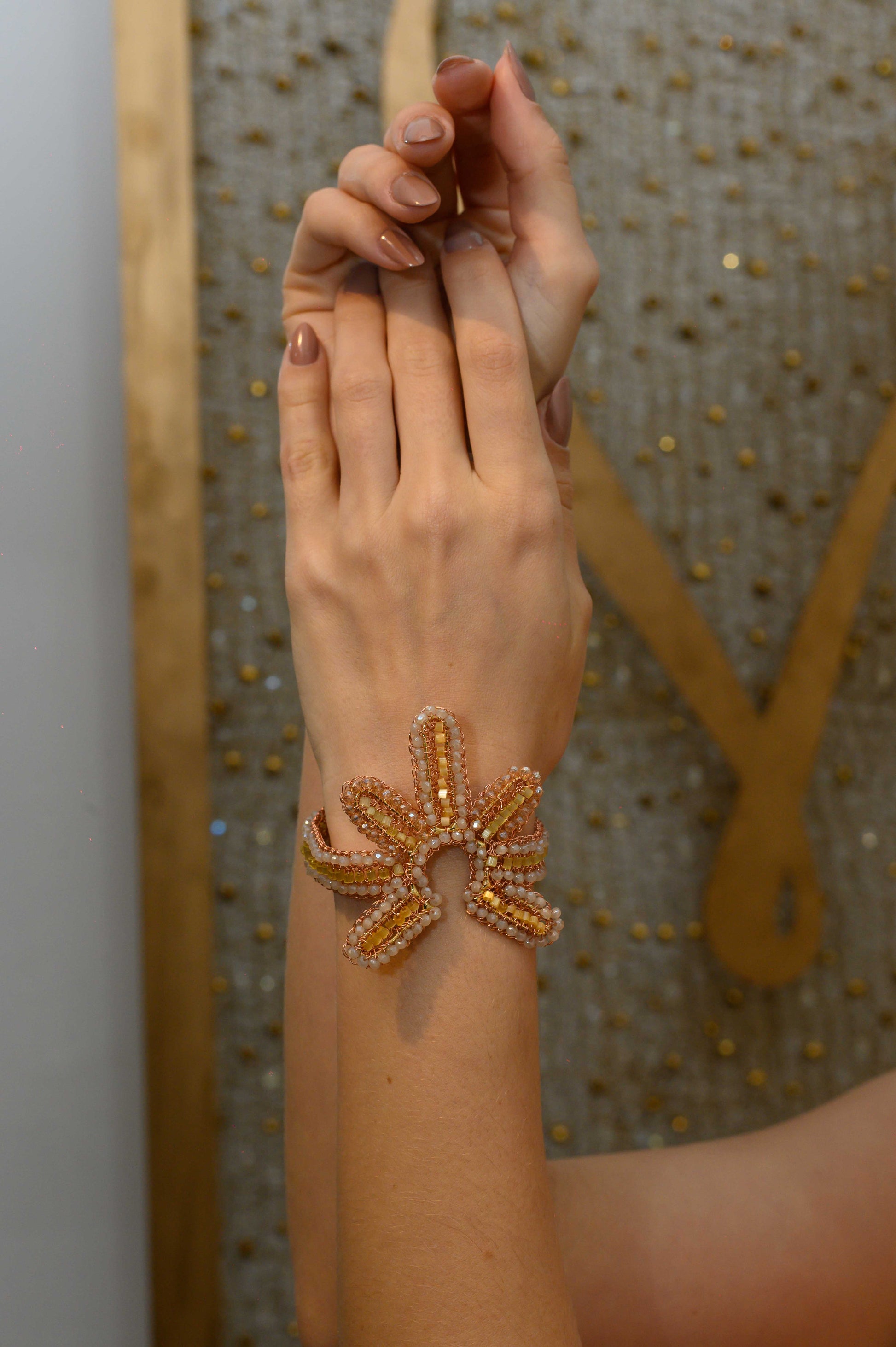 This sun like hand-crocheted cuff was fabricated by skilled Brazilian artisans. The shiny enameled wire creates a statement look without weight or bulk! They are very comfortable to wear, light and can be worn in every occasion: day-to-night and casual-to-special. The sparkling crystals and beads are supplemental to the fine craft artwork spent in every piece of my jewelry. Made from non-allergenic (hypoallergenic) and nickel-free material. Stunning jewelry that will last for a lifetime. The magnetic clap makes this bracelet easier to get on and off. The result is a remarkable piece of jewelry.