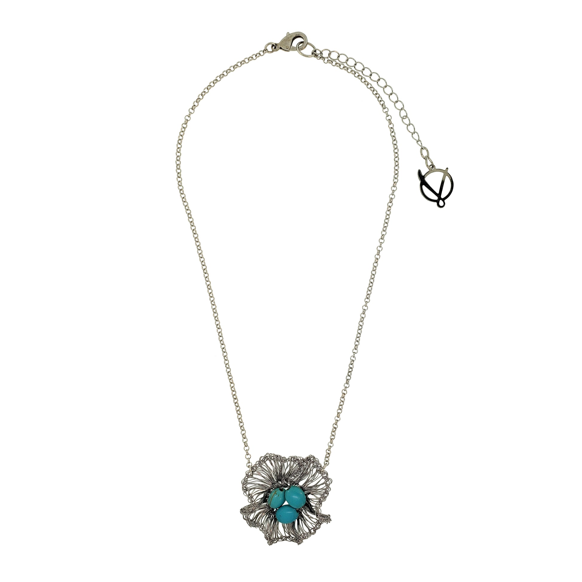 Western Blue Mix Nyla Pendant Handmade Crochet Necklace